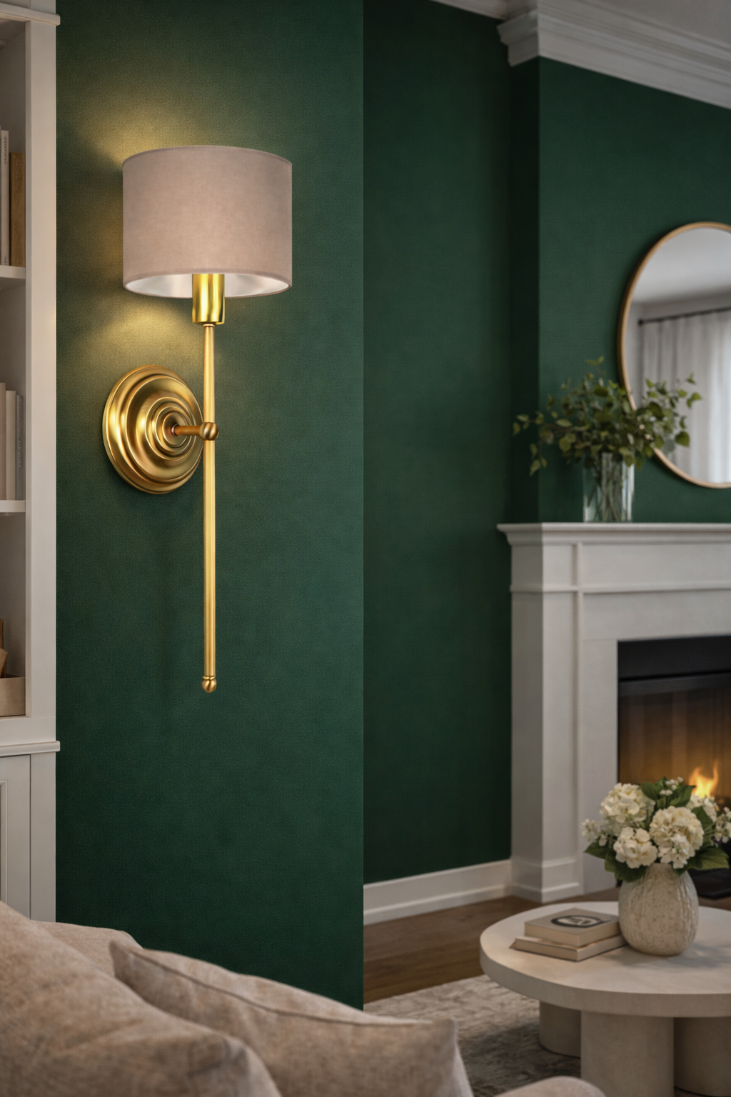 Wprowadź do swojego wnętrza nutę elegancji i ponadczasowego stylu dzięki kinkietowi ściennemu w stylu retro. Ten wyjątkowy kinkiet ścienny z mosiężnym wykończeniem i klasycznym abażurem, to idealne rozwiązanie do aranżacji w stylu vintage, klasycznym czy glamour.