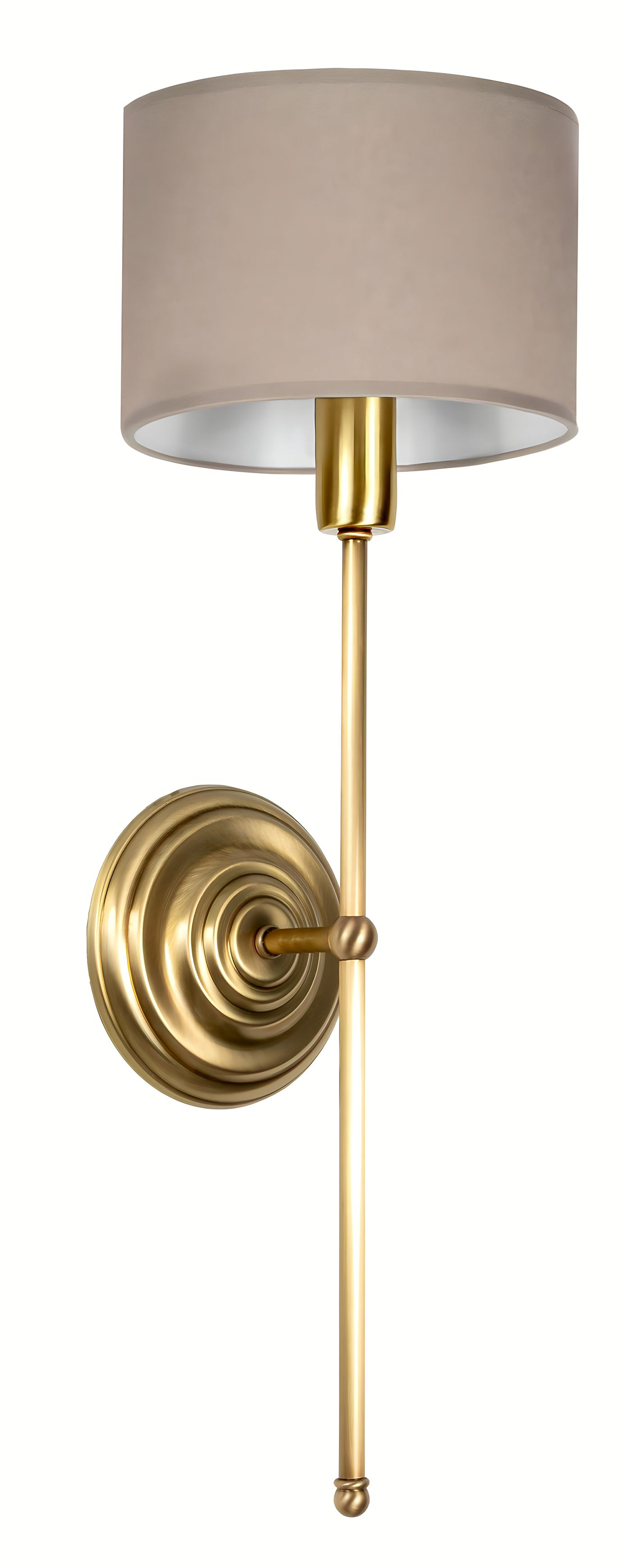 Materiał: metal (mosiądz) + tkaninowy abażur