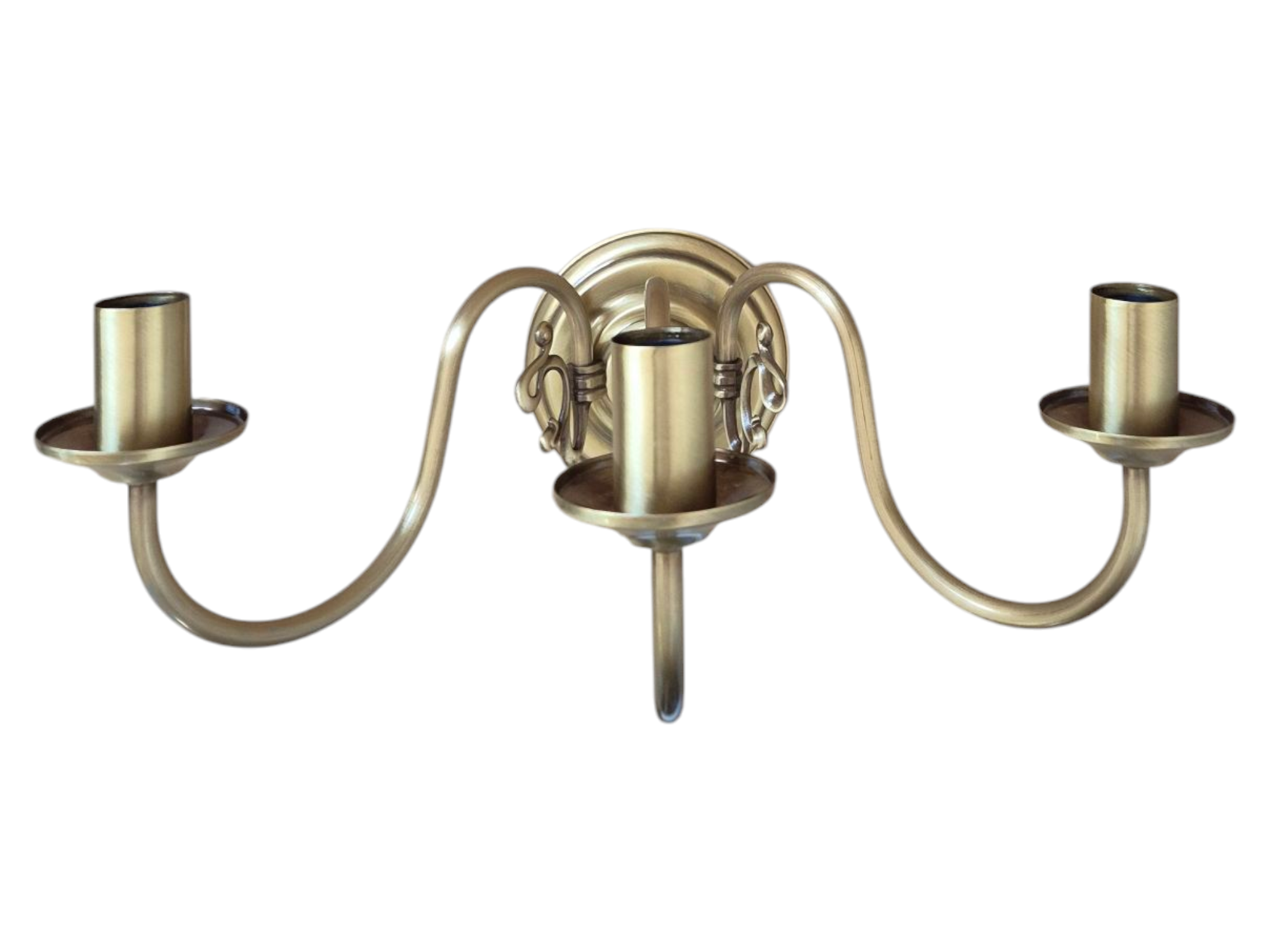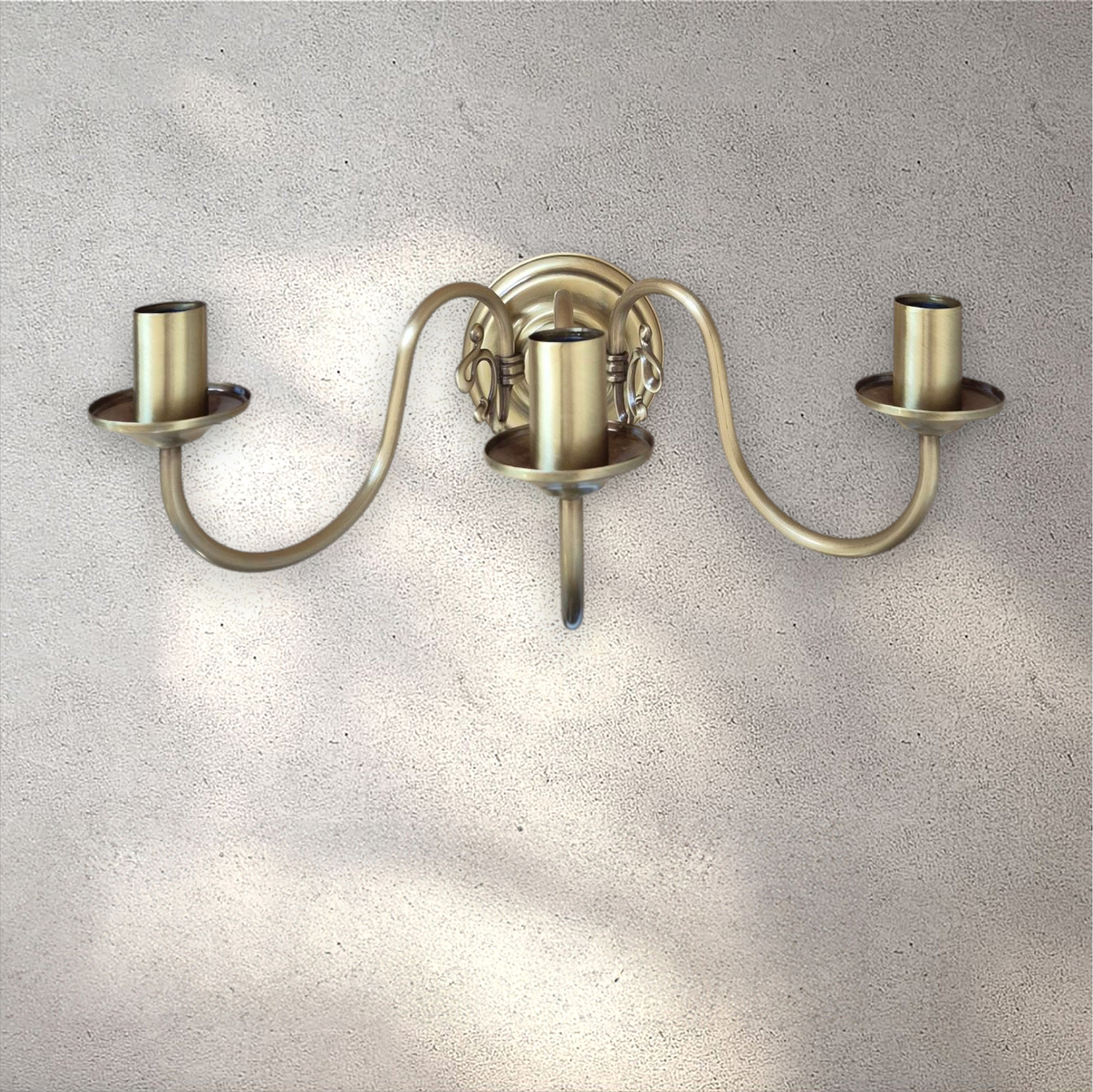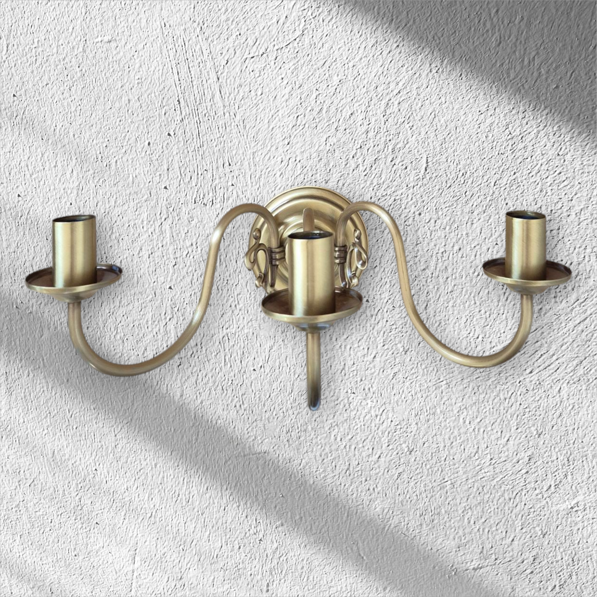 Trójramienny kinkiet z mosiądzu, lampa ścienna mosiężna świeczkowa Flamand.