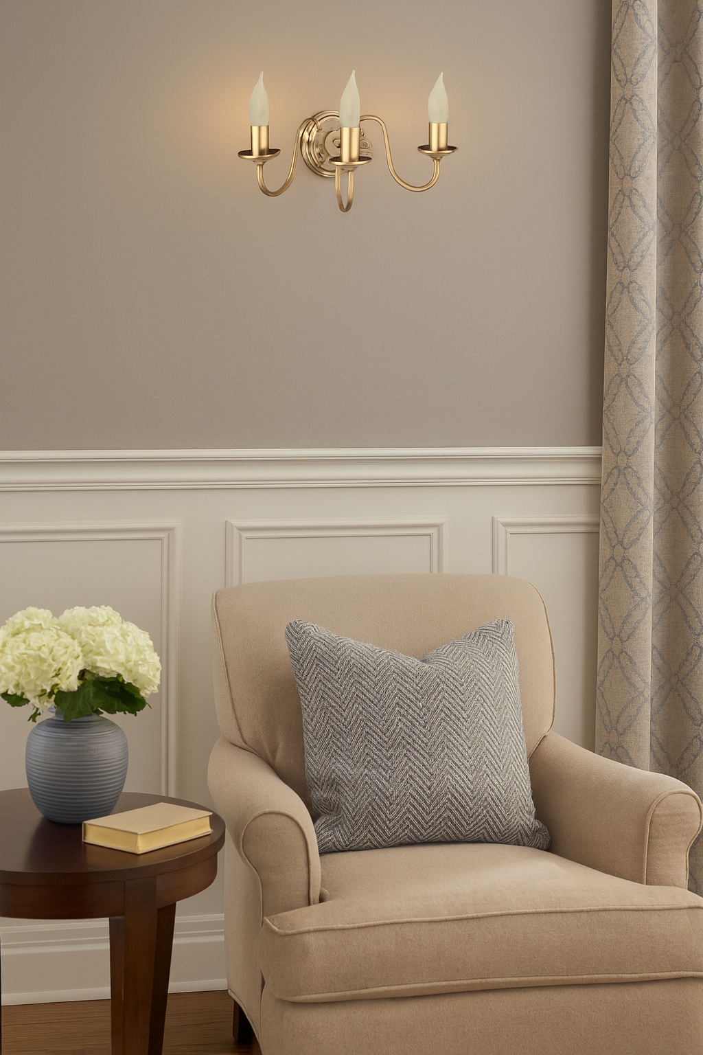 Mosiądz doskonale komponuje się z drewnianymi, masywnymi meblami charakterystycznymi dla stylu klasycznego. Doda szyku we wnętrzach urządzonych w stylu glamour. Ponadto, mosiężne lampy wydobędą wyjątkowy charakter nowoczesnych pomieszczeń, w których dominuje welur. Stworzą spójną całość z innymi elementami z mosiądzu, takimi jak klamki, uchwyty, czy ramy luster. 3ramienny kinkiet Flamand to bardzo dobra oferta do oświetlenia do kościołów, kaplic, plebanii, a także piękna lampa ścienna retro do dworków i pałaców.