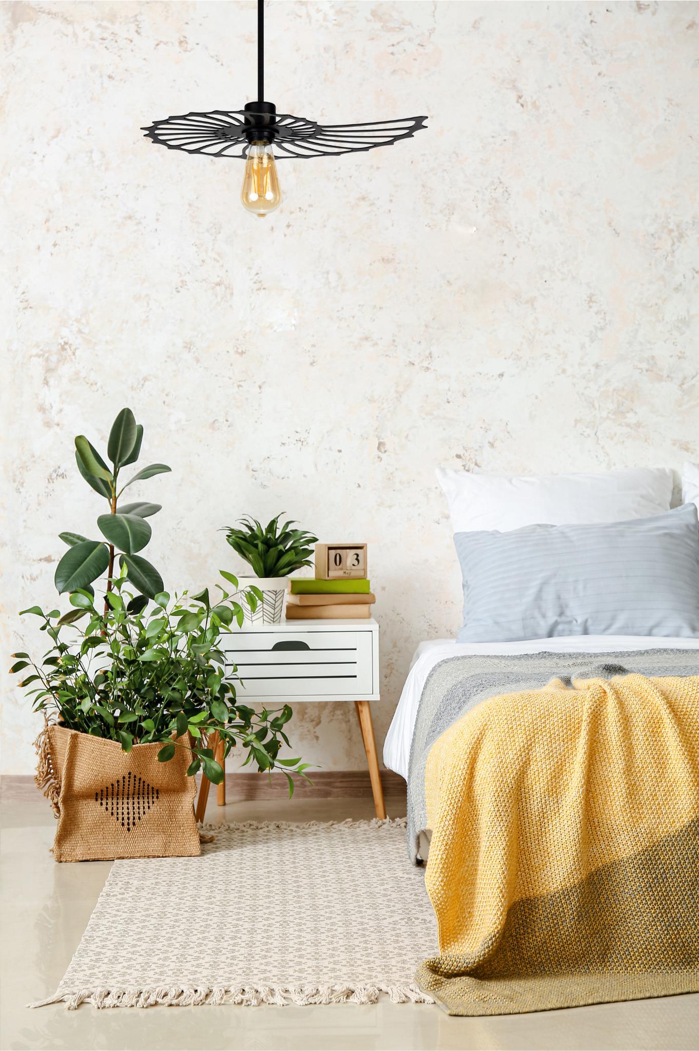 Niezwykły efekt rzucanych cieni sprawia, że pomieszczenie nabiera nowego charakteru i staje się bardziej przytulne. Lampa występuje w trzech wysokościach, więc z pewnością dobierzesz ja do swojego pomieszczenia.