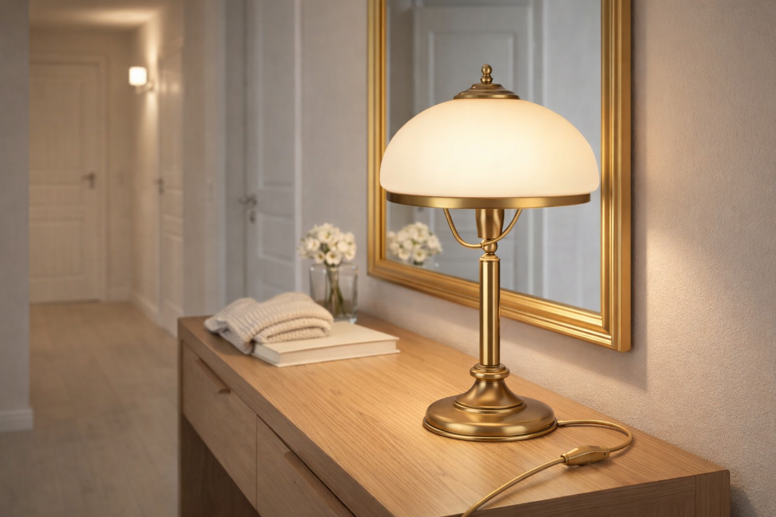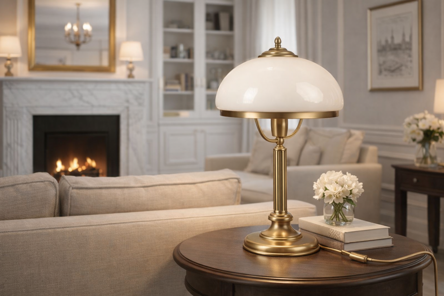 Mosiądz doskonale komponuje się z drewnianymi, masywnymi meblami charakterystycznymi dla stylu klasycznego. Doda szyku we wnętrzach urządzonych w stylu glamour. Ponadto, mosiężne lampy wydobędą wyjątkowy charakter nowoczesnych pomieszczeń, w których dominuje welur. Stworzą spójną całość z innymi elementami z mosiądzu, takimi jak klamki, uchwyty, czy ramy luster.