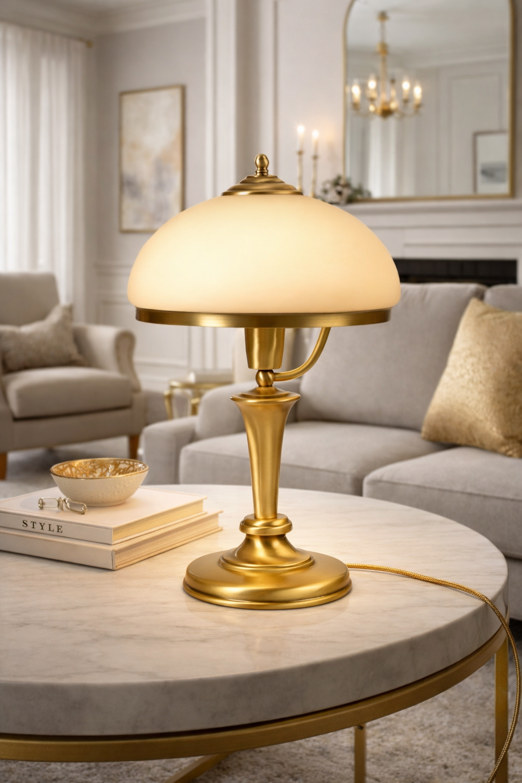 Mosiądz doskonale komponuje się z drewnianymi, masywnymi meblami charakterystycznymi dla stylu klasycznego. Doda szyku we wnętrzach urządzonych w stylu glamour. Ponadto, mosiężne lampy wydobędą wyjątkowy charakter nowoczesnych pomieszczeń, w których dominuje welur. Stworzą spójną całość z innymi elementami z mosiądzu, takimi jak klamki, uchwyty, czy ramy luster.