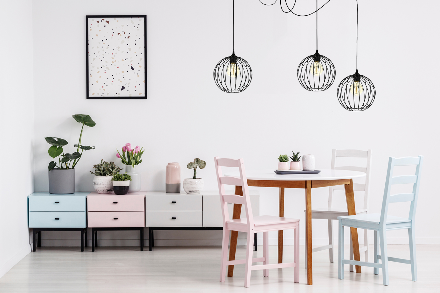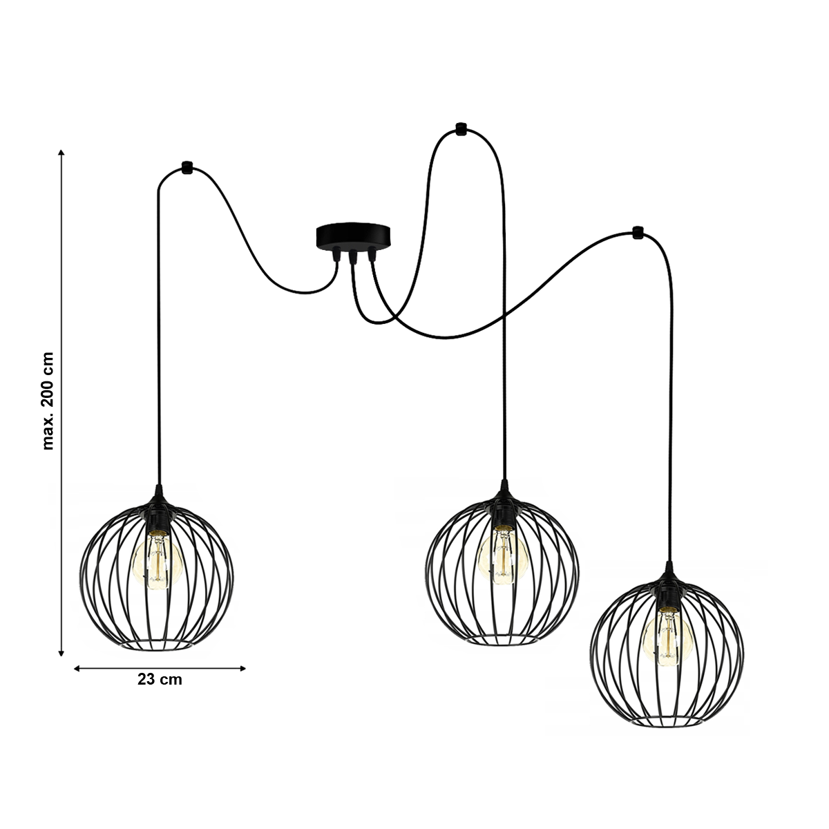Lampa wisząca z możliwością regulacji rozstawu na suficie. Dzięki zamontowanym zaciskom, łatwo skrócić długość linki. Do kompletu posiadamy także w sprzedaży lampy 3pł.