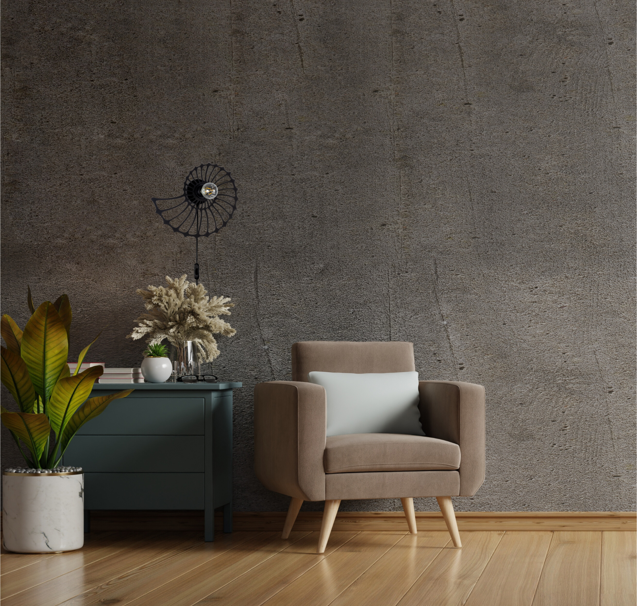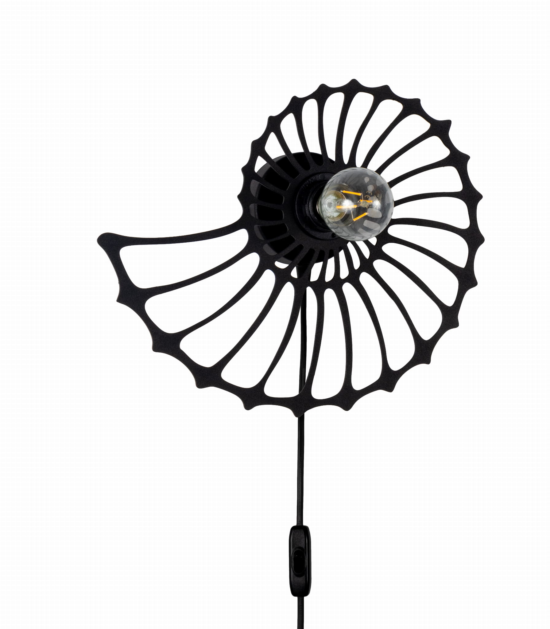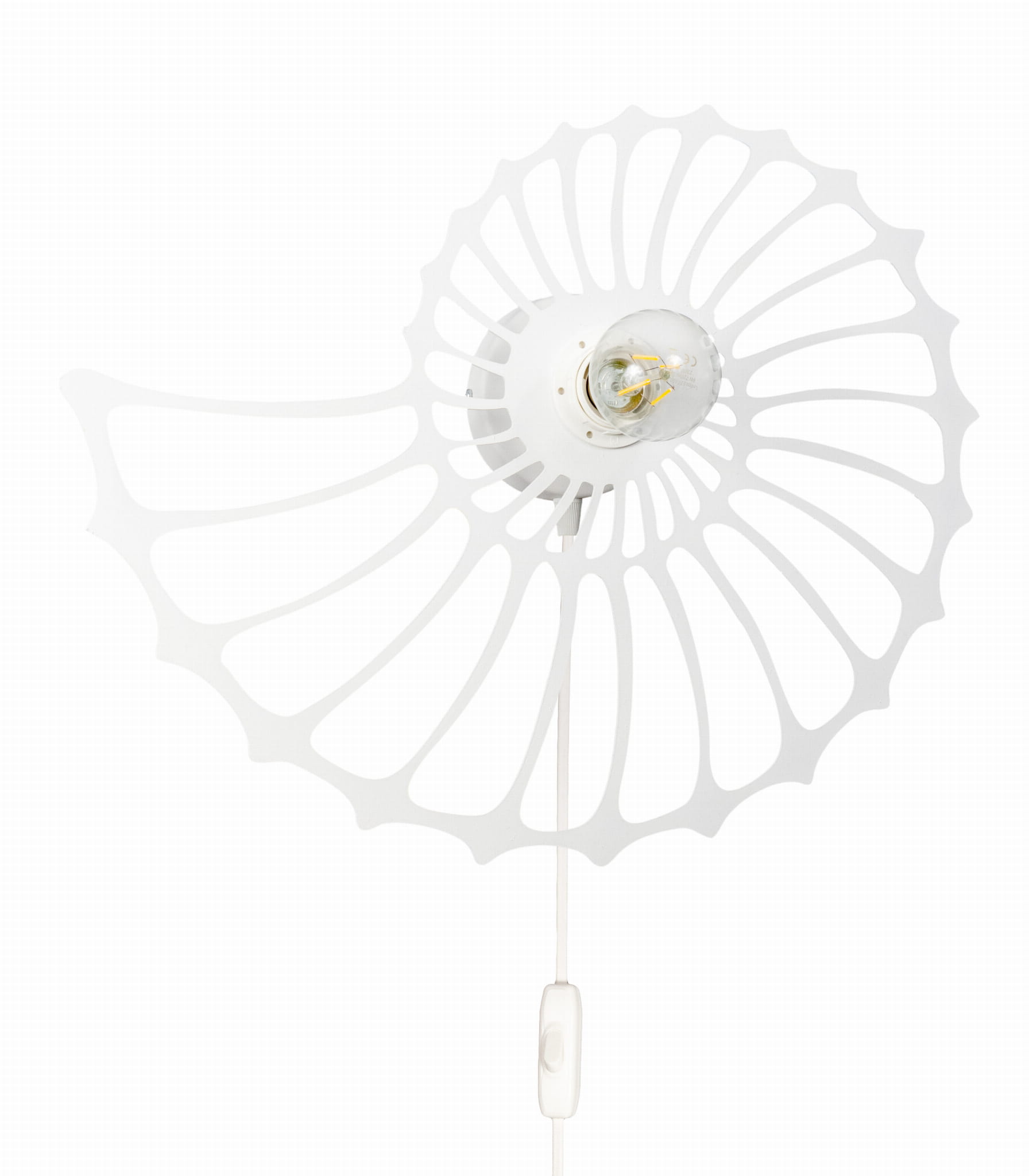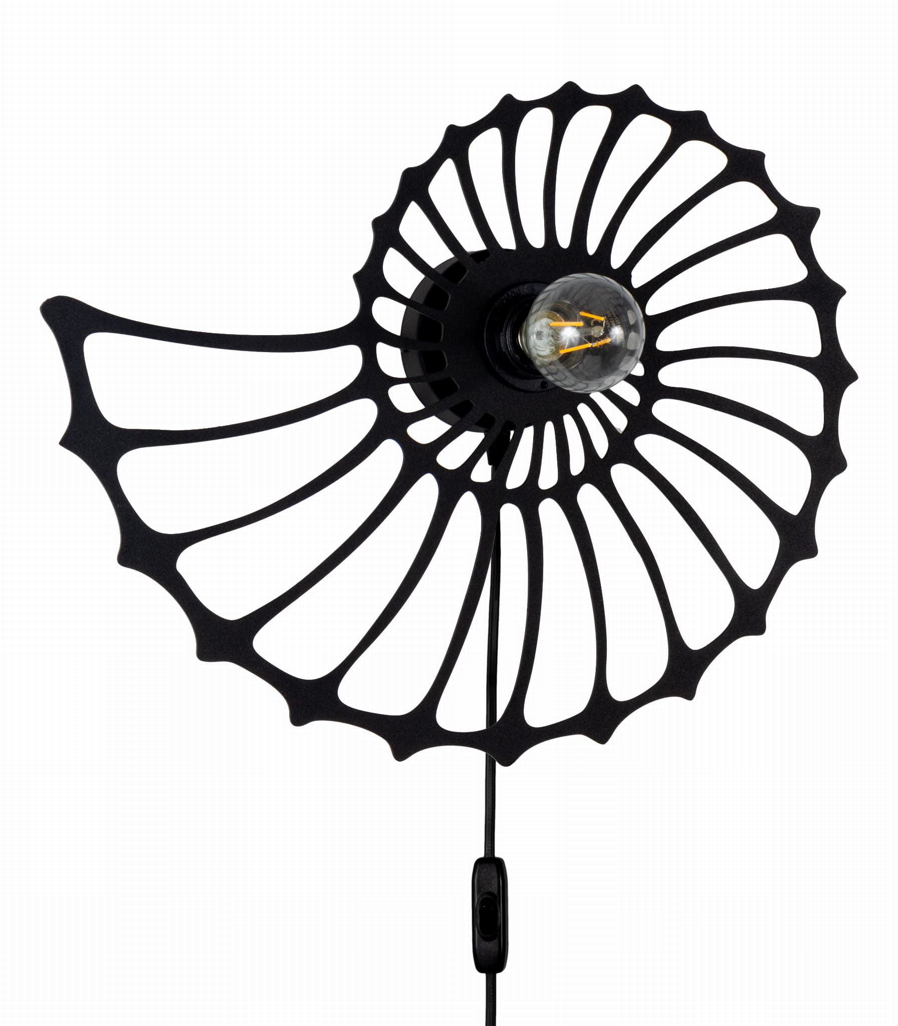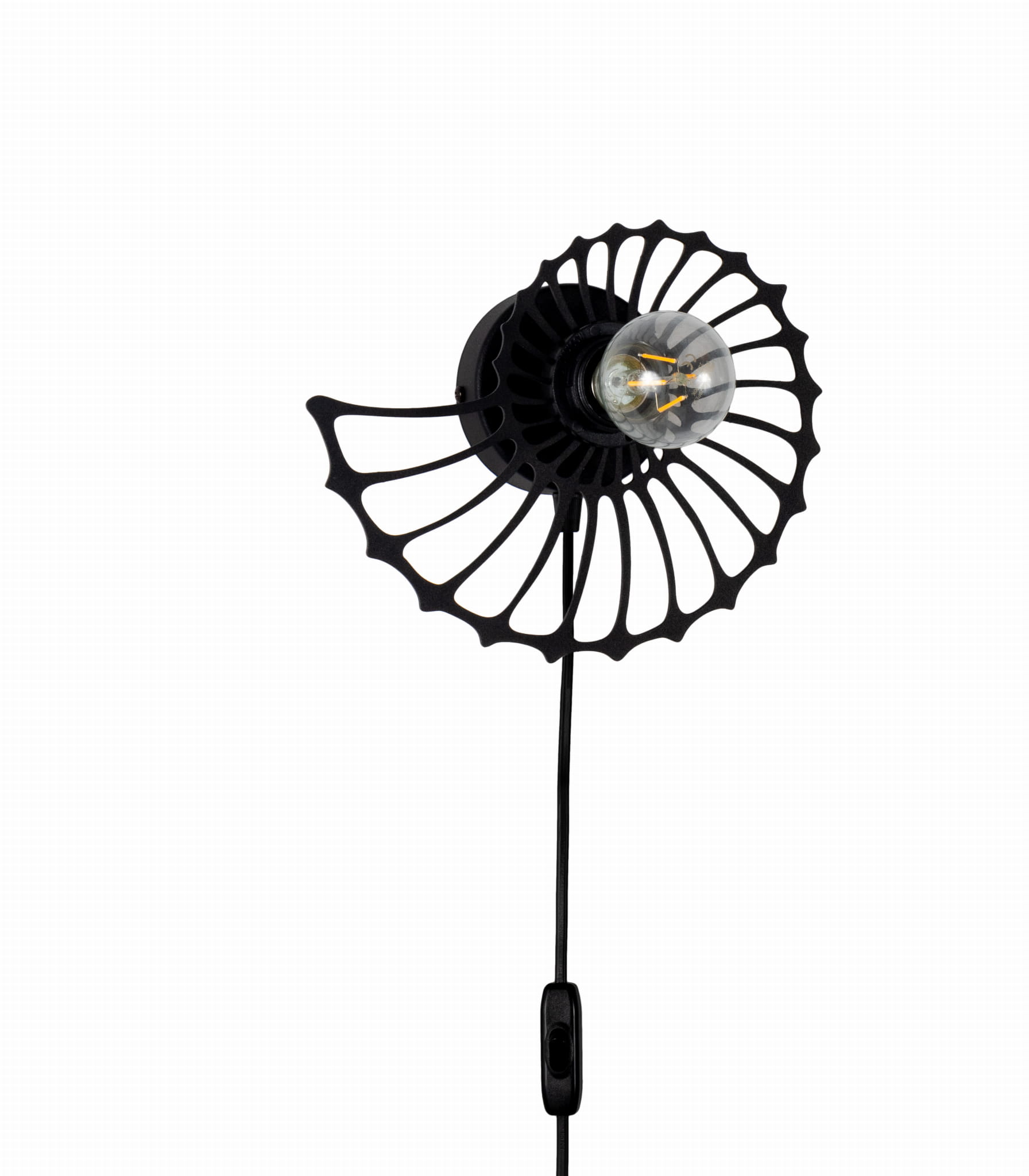 Lampa ścienna Amonit to niezwykłe oświetlenie, które odmieni każde wnętrze. Jej piękny klosz w kształcie ślimaka sprawia, że jest to nie tylko lampa, ale również designerski element dekoracyjny. Dzięki przyjemnemu światłu, które rozprasza się delikatnie przez metalowe wycięcia klosza, mamy niepowtarzalną atmosferę zarówno w salonie, jak i sypialni. Dzięki zamontowanemu kablowi z wtyczką możesz ją zamontować gdzie tylko chcesz. Przy kąciku do czytania, czy przy stoliku kawowym.