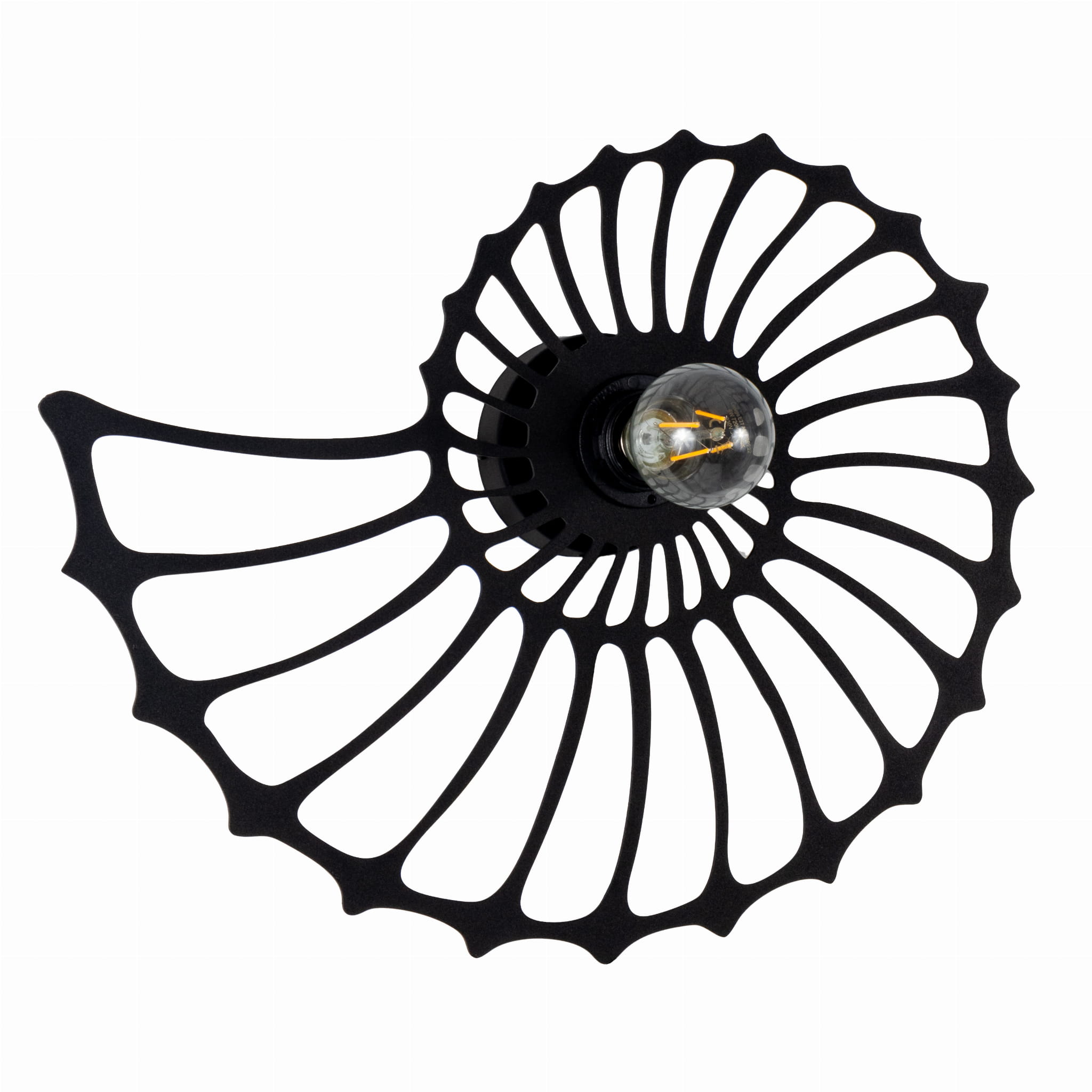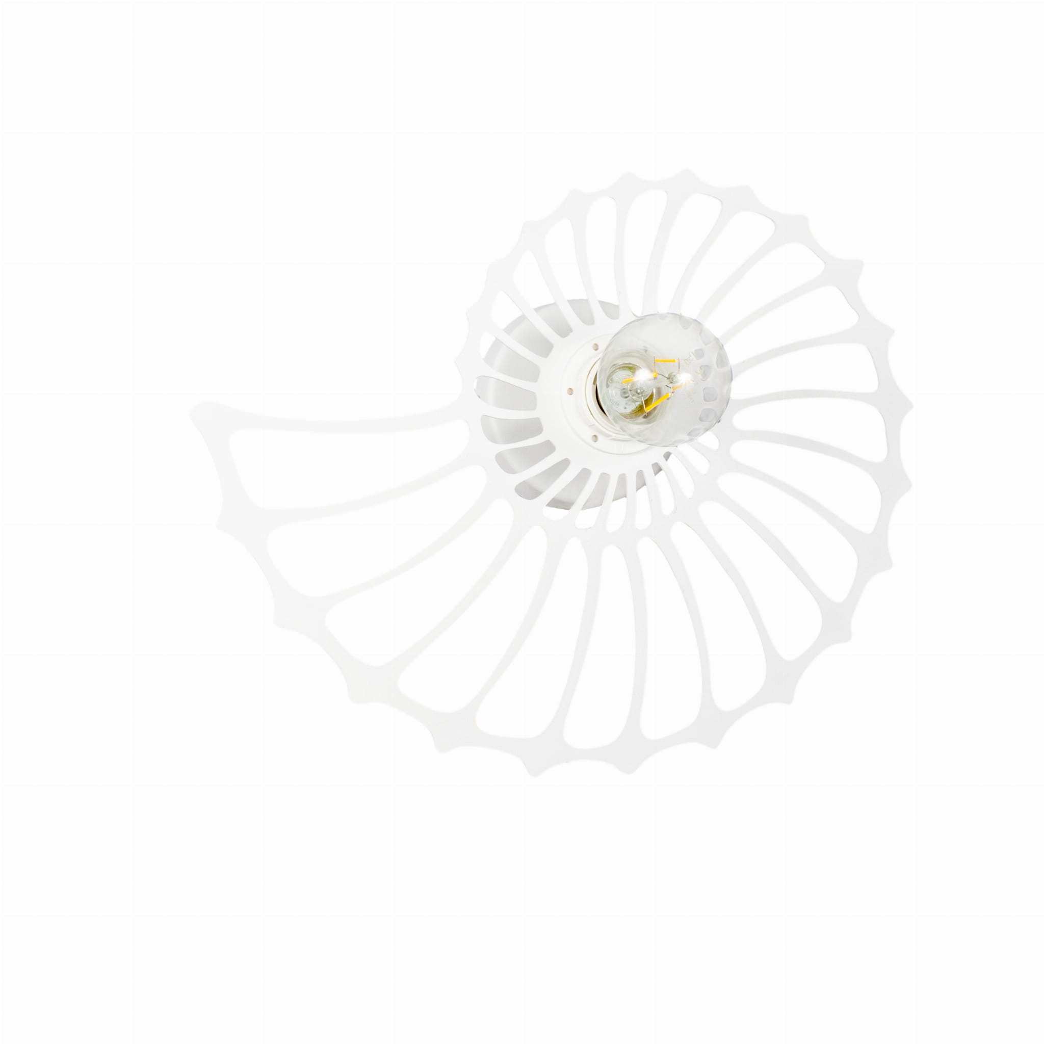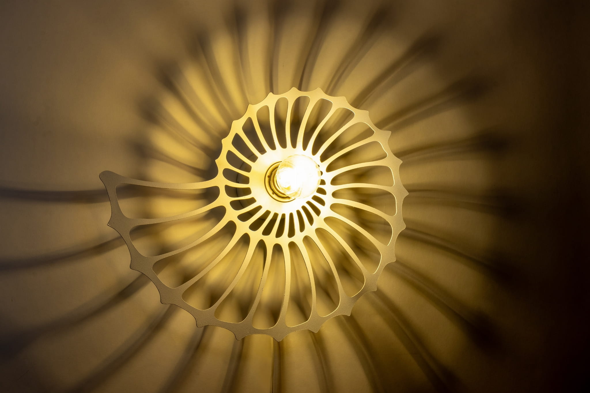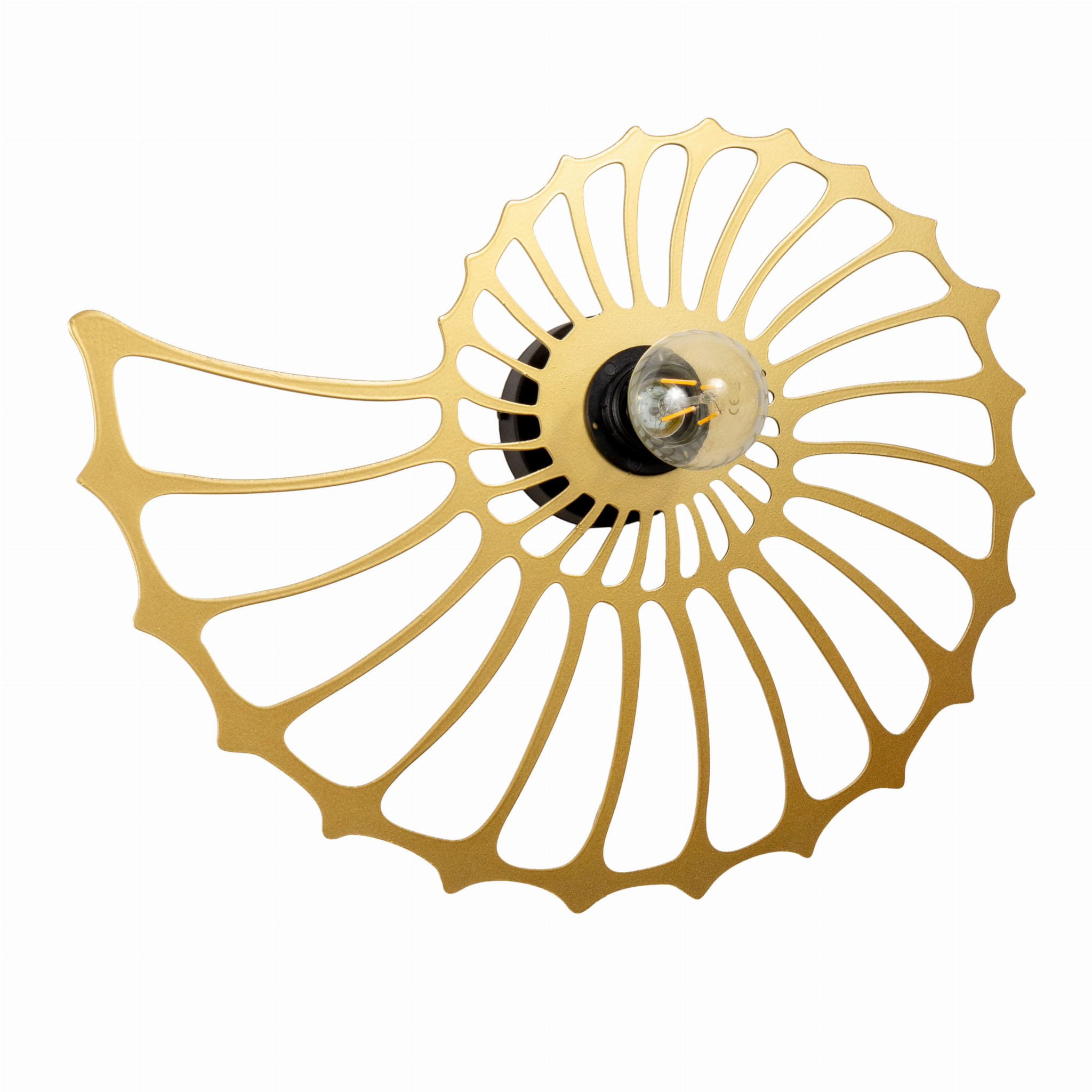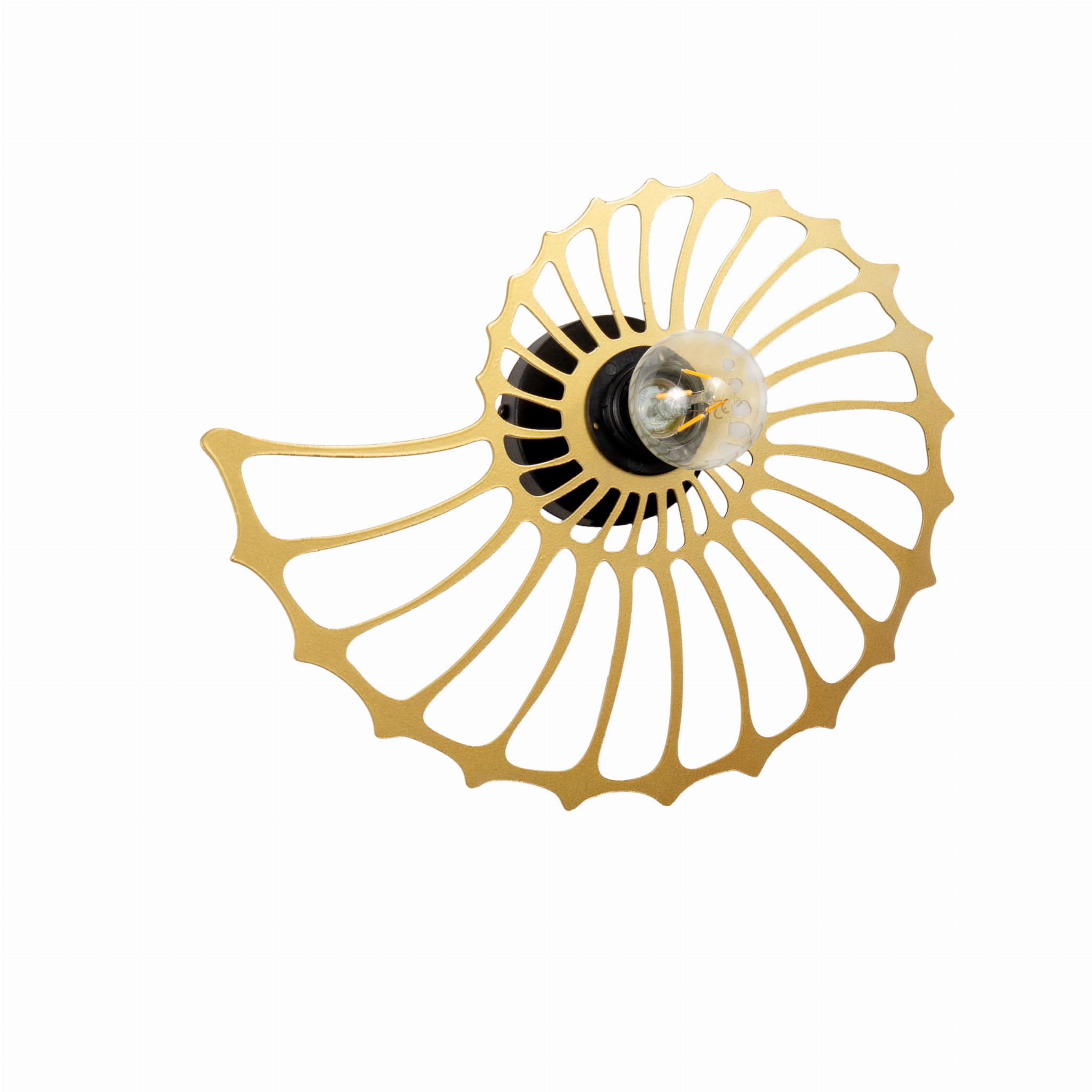 Lampa ścienna Amonit to niezwykłe oświetlenie, które odmieni każde wnętrze. Jej piękny klosz w kształcie ślimaka sprawia, że jest to nie tylko lampa, ale również designerski element dekoracyjny. Dzięki przyjemnemu światłu, które rozprasza się delikatnie przez metalowe wycięcia klosza, mamy niepowtarzalną atmosferę zarówno w salonie, jak i sypialni. Możesz ja zamontować w każdym pomieszczeniu: jako lampa ścienna , np przy łóżku, schodach a także bezpośrednio na suficie.