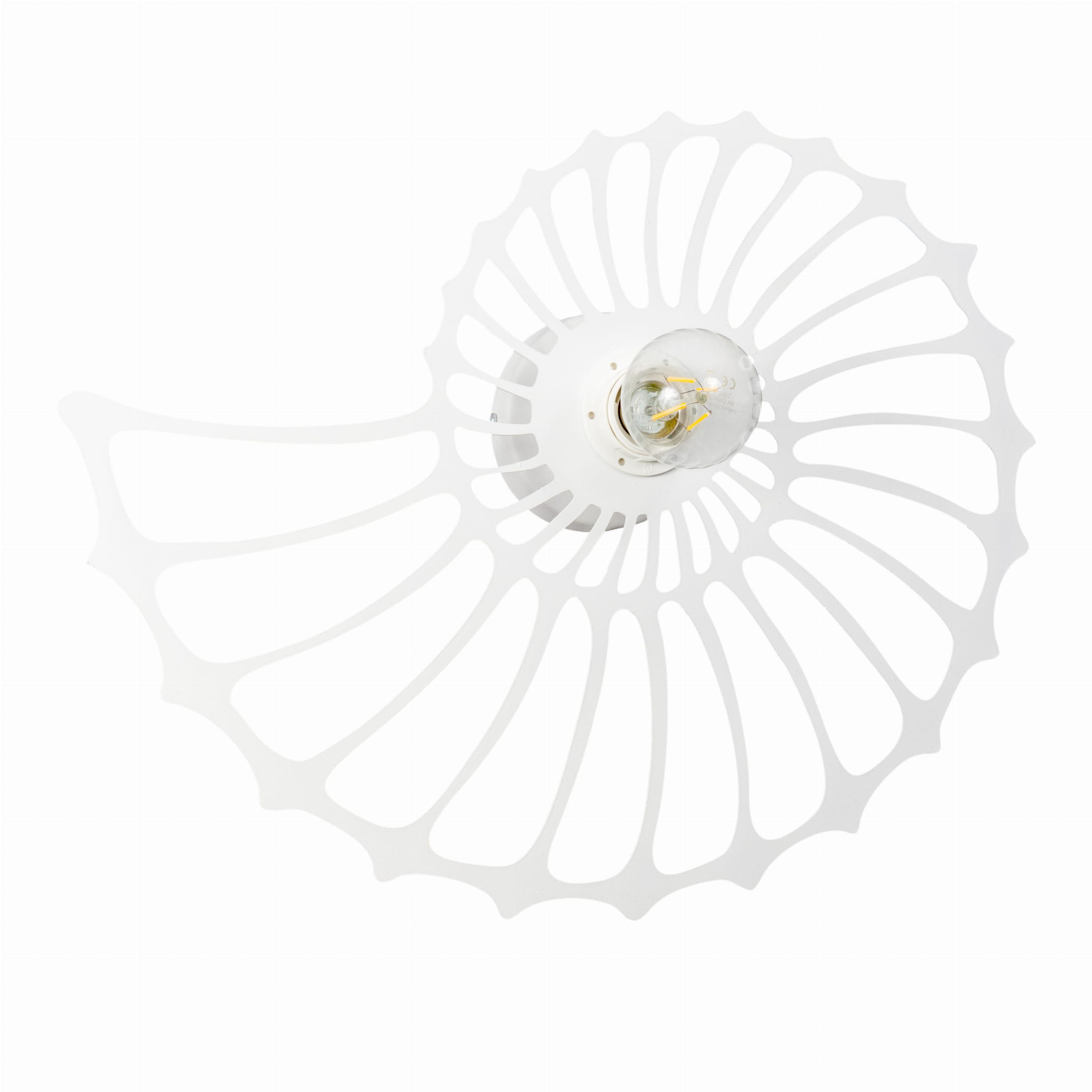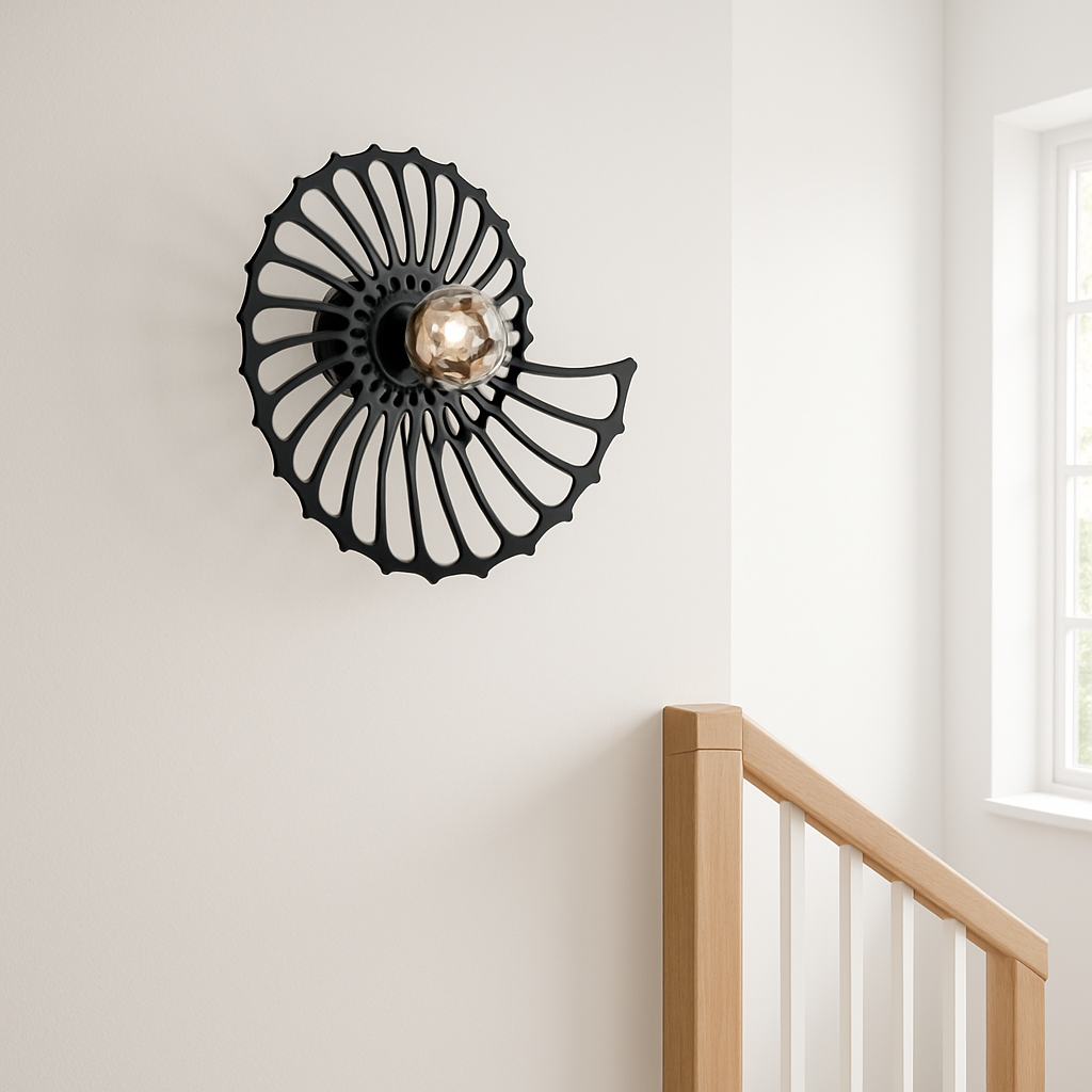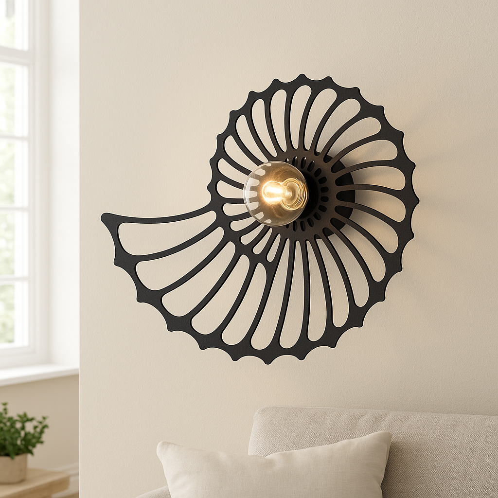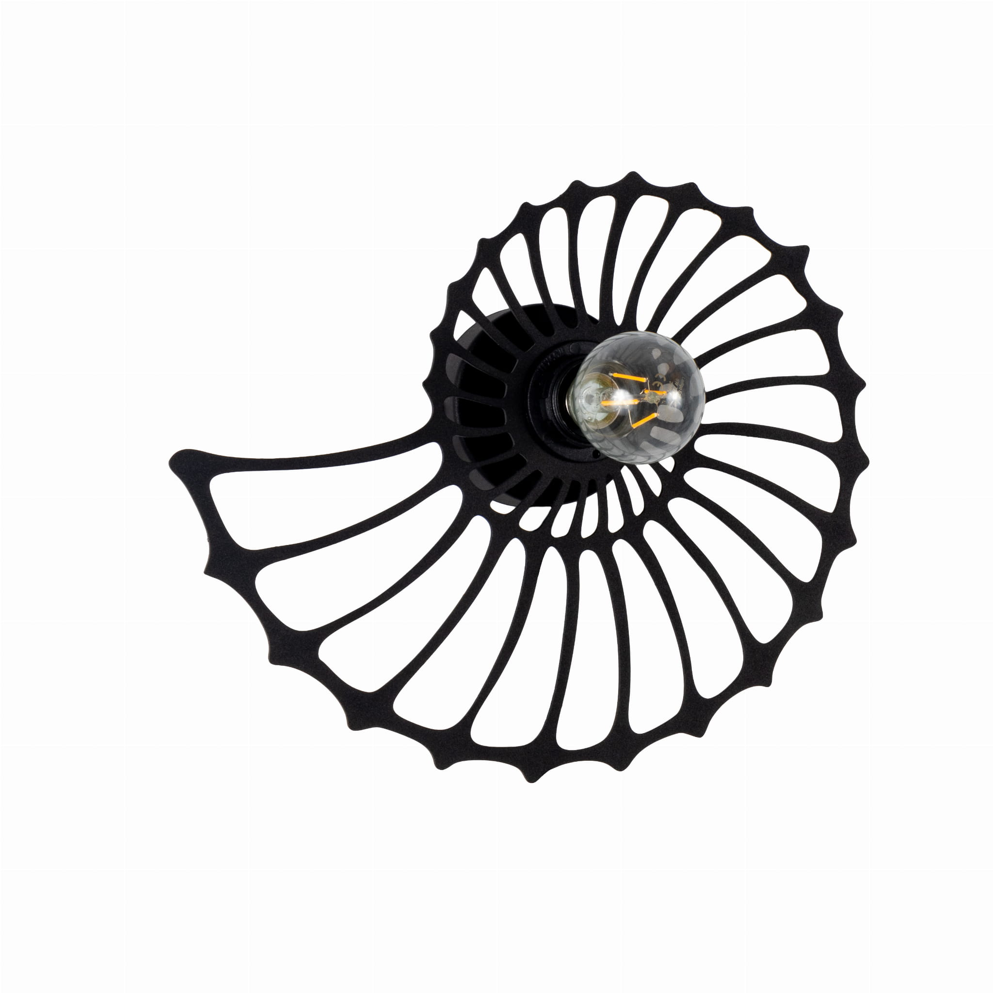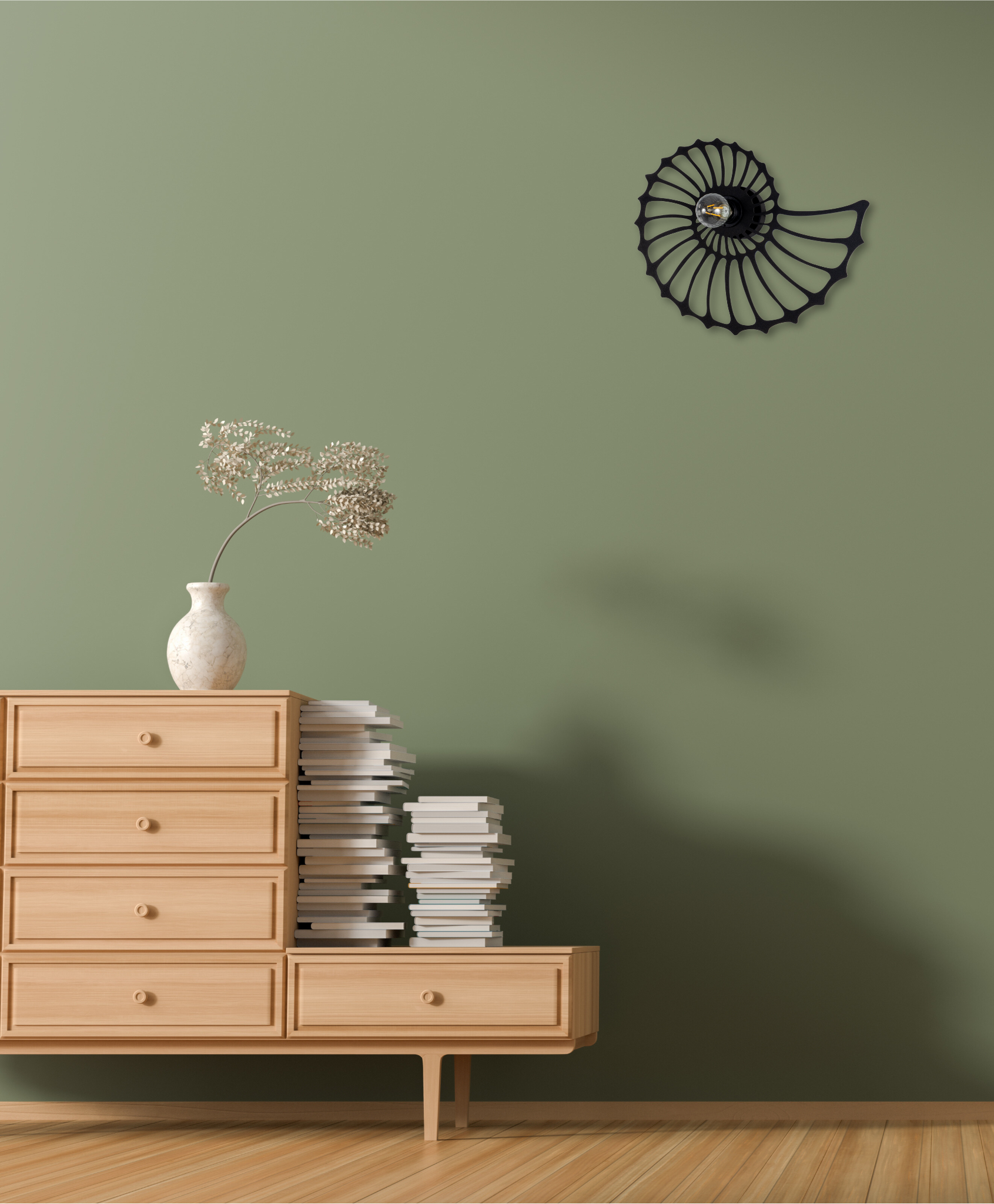 Lampa ścienna Amonit to niezwykłe oświetlenie, które odmieni każde wnętrze. Jej piękny klosz w kształcie ślimaka sprawia, że jest to nie tylko lampa, ale również designerski element dekoracyjny. Dzięki przyjemnemu światłu, które rozprasza się delikatnie przez metalowe wycięcia klosza, mamy niepowtarzalną atmosferę zarówno w salonie, jak i sypialni. Możesz ja zamontować w każdym pomieszczeniu: jako lampa ścienna , np przy łóżku, schodach a także bezpośrednio na suficie.
