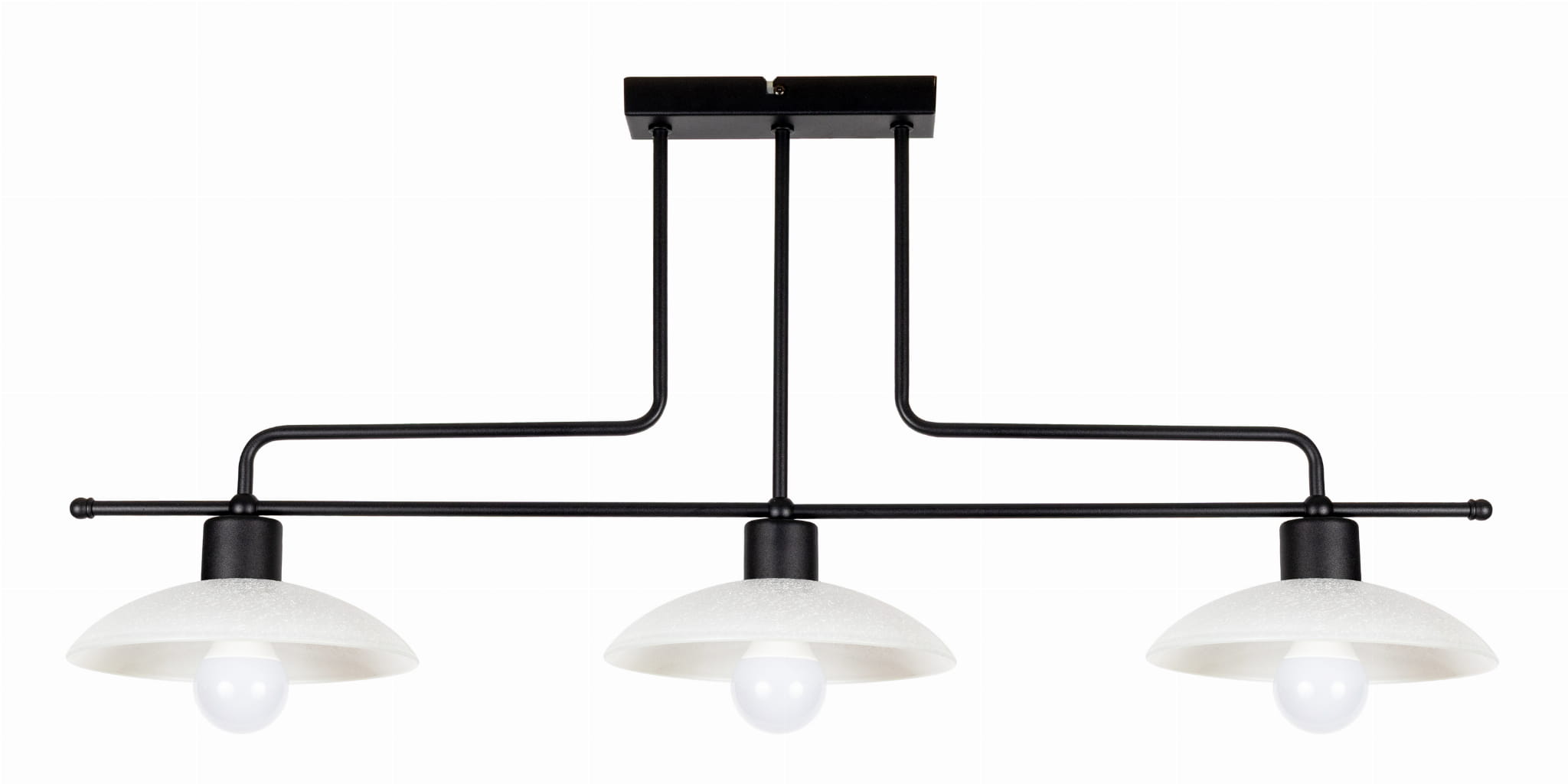 Świetnie komponuje się z wnętrzami w stylu loft, industrialnym, skandynawskim, a także retro i nowoczesnym minimalistycznym. Jej surowy wygląd z czarną konstrukcją i białymi kloszami z łatwością dopasujesz do różnych aranżacji – zarówno w mieszkaniu, jak i w przestrzeniach komercyjnych, takich jak kawiarnie, pracownie czy showroomy.