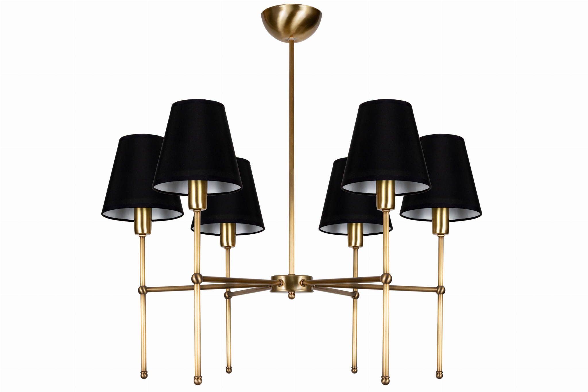 Wprowadź do swojego domu nutę francuskiej elegancji z lampą sufitową AURORA – 6-ramiennym żyrandolem inspirowanym urokiem południowej Prowansji. Połączenie klasycznego złotego patynowanego wykończenia z czarnymi stożkowymi abażurami tworzy oświetlenie idealne do jasnych, romantycznych wnętrz.