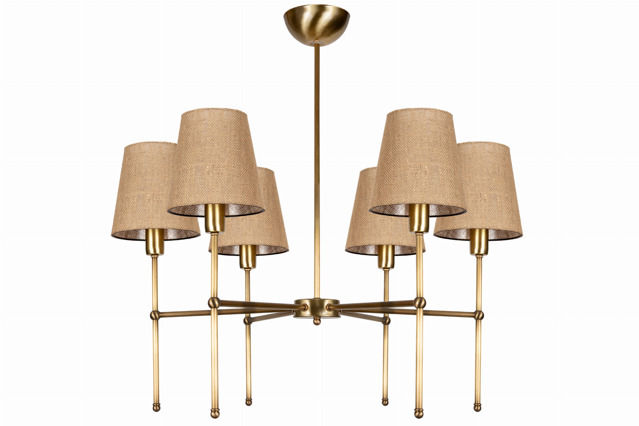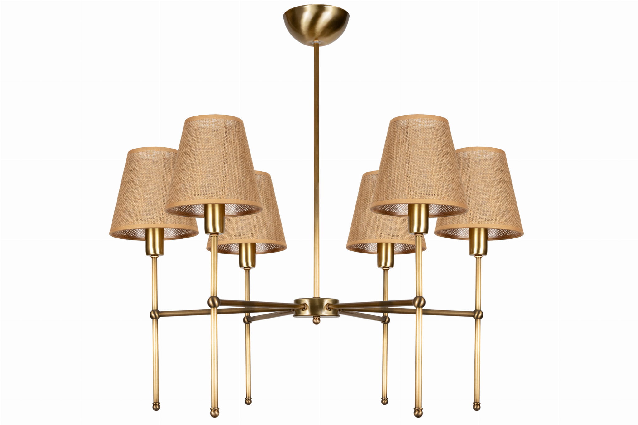 Lampa sufitowa AURORA – elegancki żyrandol z mosiądzu 6-ramienny