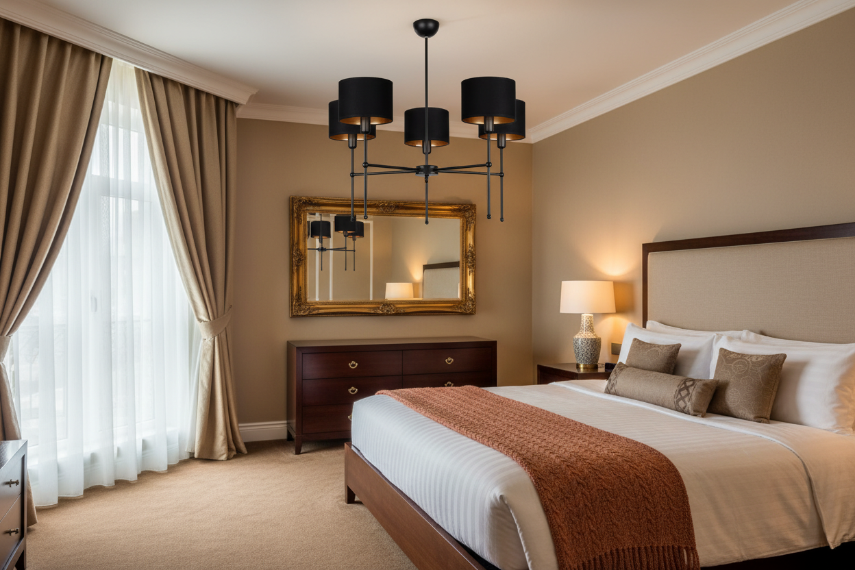 Solidna metalowa rama zapewnia trwałość, a rozłożysty układ ramion z pięcioma źródłami światła gwarantuje równomierne oświetlenie całego pomieszczenia. Abażury wykonane z wysokiej jakości tkaniny subtelnie rozpraszają światło, tworząc przytulną i ciepłą atmosferę. MODENA to nie tylko funkcjonalne źródło światła, ale także dekoracyjny akcent nadający wnętrzu charakteru.