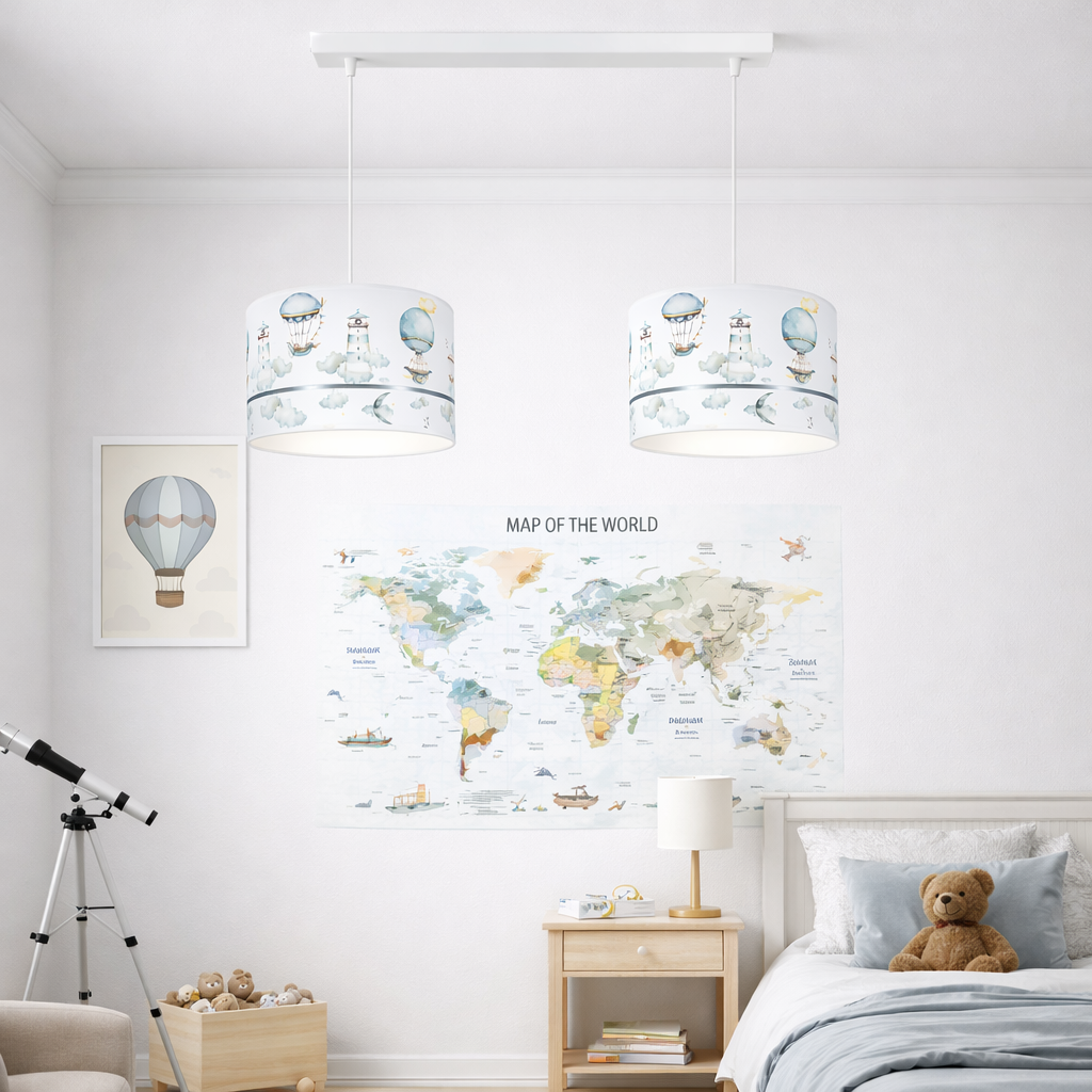 Lampa wisząca do pokoju dziecięcego z abażurkami ( nadruk na pcv ) - uniwersalna - wystarczy zmienić w przyszłości abażurki a wystrój pokoju się zmieni.