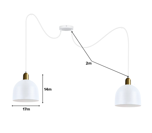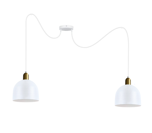 Dodaj elegancji i funkcjonalności swojemu wnętrzu dzięki tej białej lampie wiszącej. Nowoczesny design z dwoma metalowymi kloszami w kształcie kopuły doskonale sprawdzi się w jadalni, nad wyspą kuchenną czy w salonie. Zaczepy sufitowe pozwalają na dowolne rozmieszczenie punktów z żarówką, tak aby oświetlić potrzebną przestrzeń.