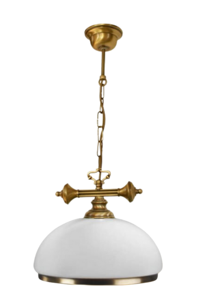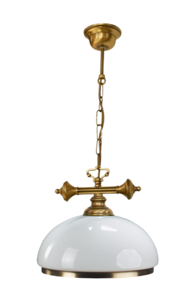 Lampa wisząca z mosiądzu WENUS - ponadczasowa elegancja dla miłośników stylu klasycznego. Do produkcji wykorzystujemy elementy pochodzenia polskiego. Klosz szklany z polskiej huty szkła, dostępny w kolorze biały mat, biały połysk, zielony mat, zielony połysk.