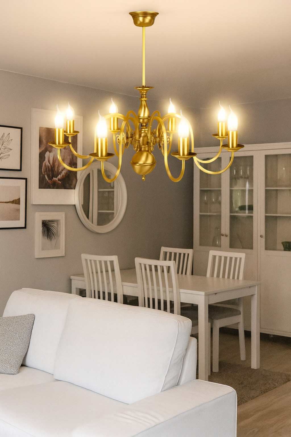Lampa świecznikowa z mosiądzu FLAMAND 8 ramienna