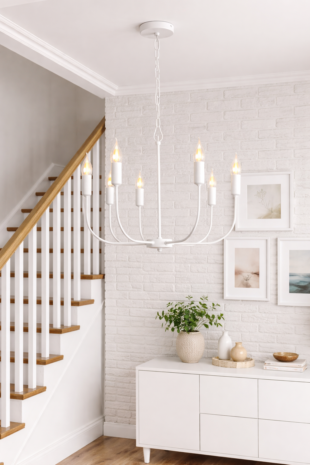 Dodaj wyjątkowy akcent do swojego wnętrza dzięki tej eleganckiej, 8-ramiennej lampie wiszącej. Wykonana z czarnego metalu, lampa zachwyca prostym, a zarazem wyrazistym designem, który doskonale wpisuje się w nowoczesne, skandynawskie lub loftowe aranżacje. Każde ramię zakończone jest dekoracyjnym punktem świetlnym w kształcie świeczki, co nadaje całości subtelnego charakteru.