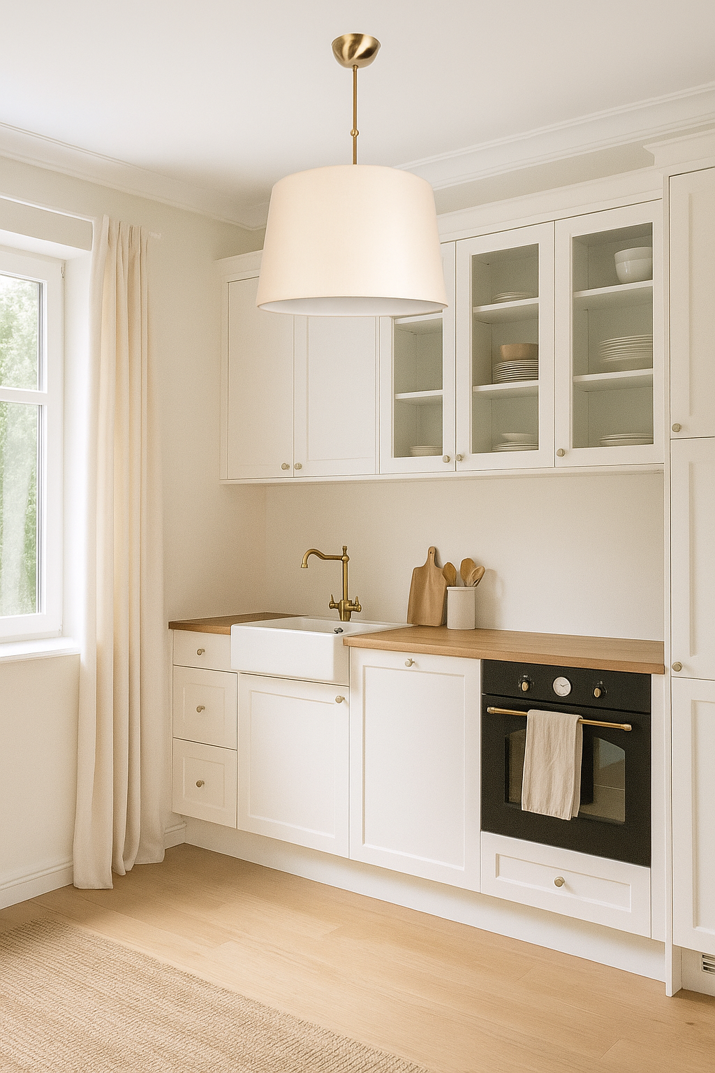 Doskonale sprawdzi się jako oświetlenie do kuchni, jadalni lub salonu utrzymanego w jasnej, harmonijnej kolorystyce. Jej ponadczasowy design pozwala na dopasowanie zarówno do wnętrz klasycznych, jak i nowoczesnych z nutą elegancji.