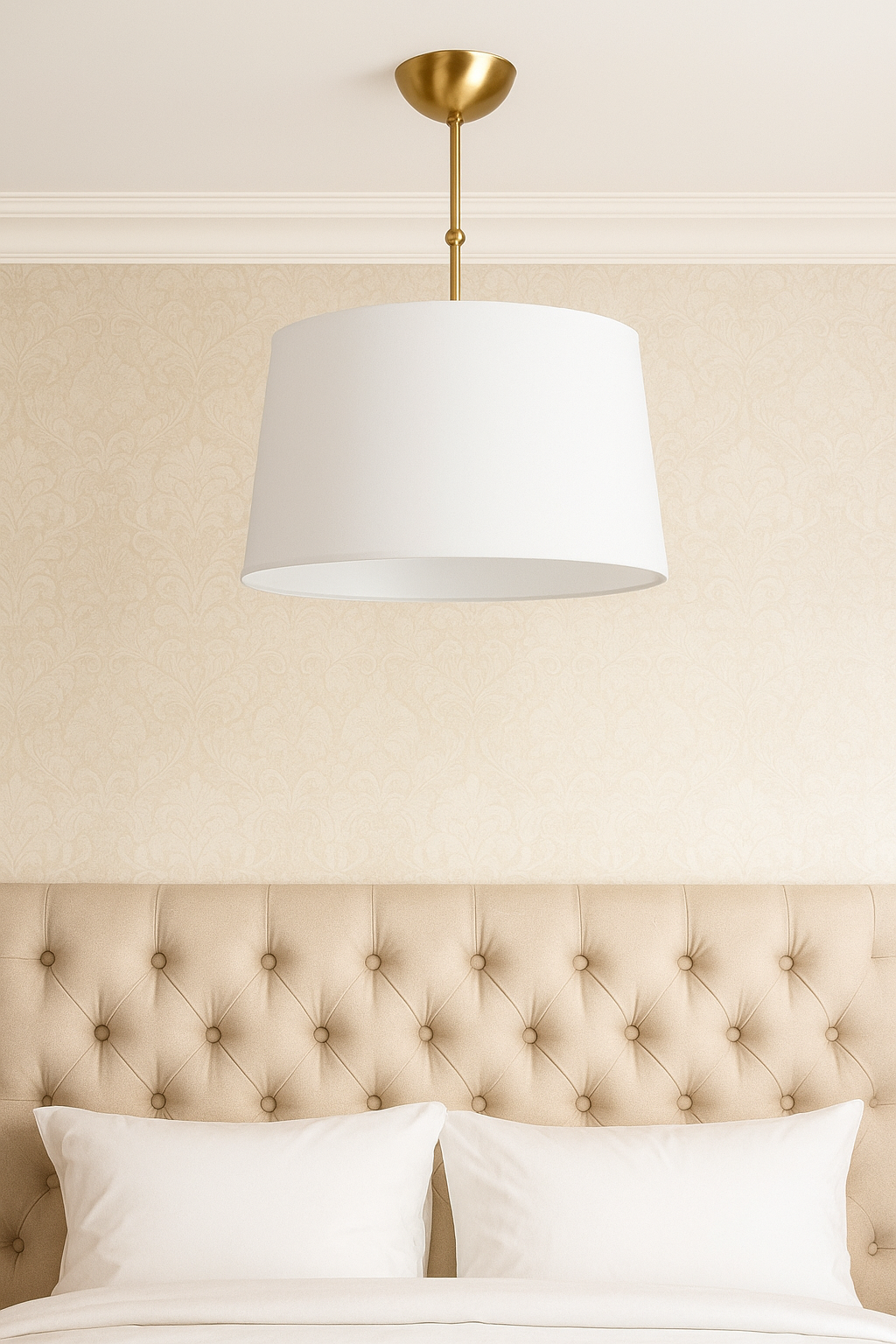 Lampa wisząca Modern Classic z abażurem i wykończeniem w kolorze patynowanego złota