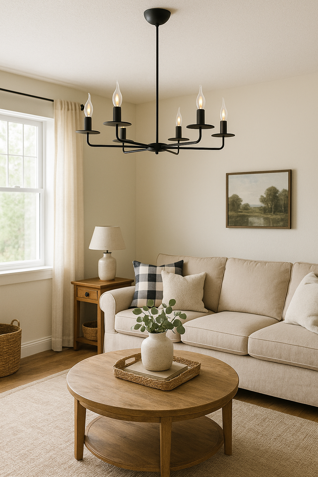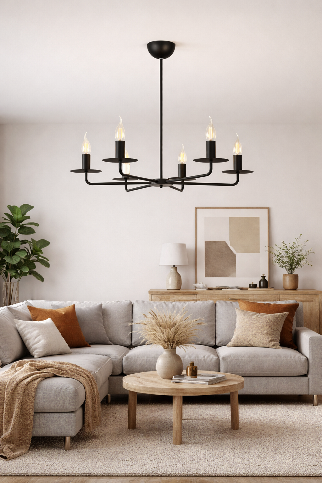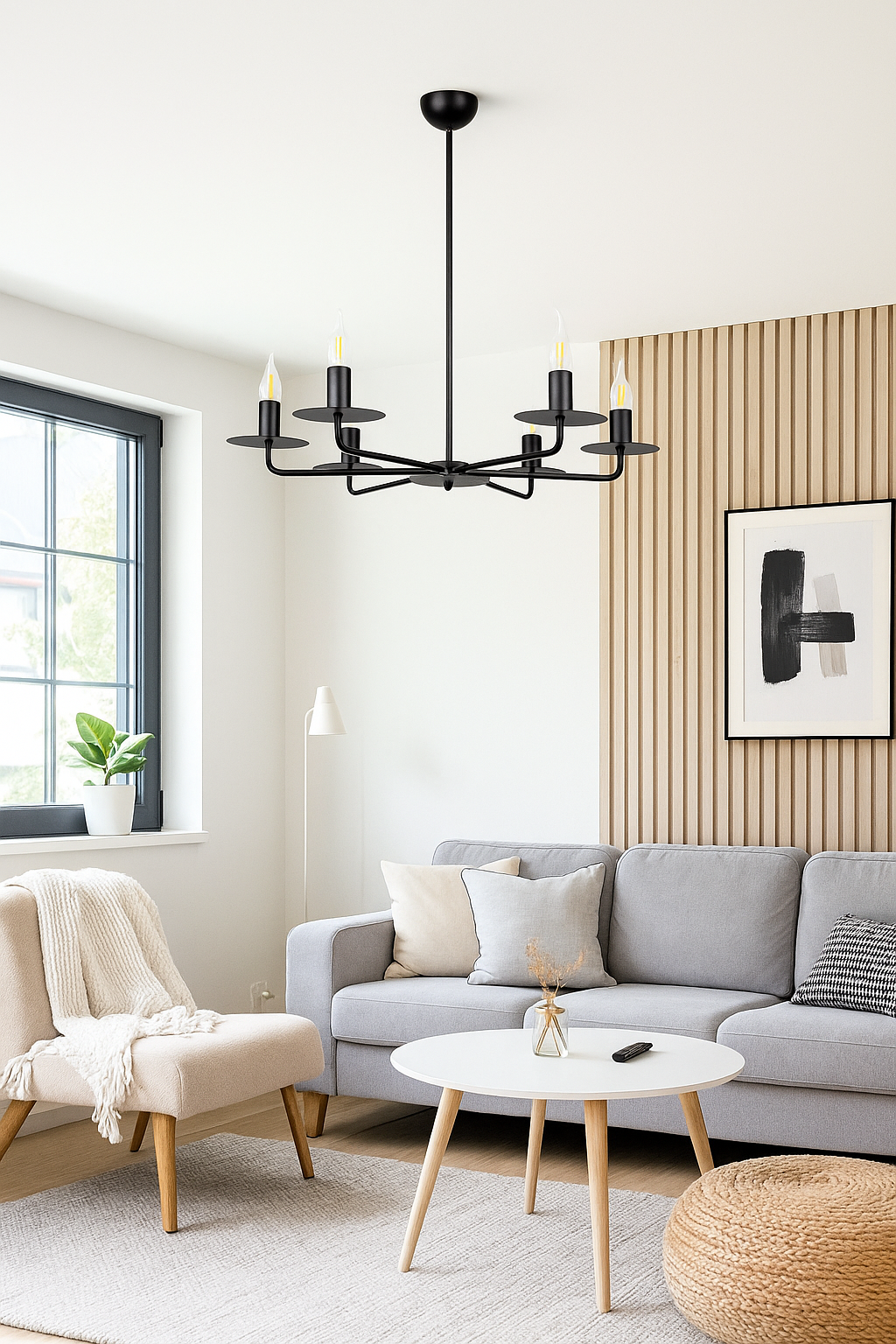 Wprowadź do swojego wnętrza wyjątkowy klimat z lampą wiszącą w stylu modern farmhouse! Ten 6-ramienny żyrandol świecznikowy to połączenie nowoczesnej prostoty i rustykalnego uroku. Wykonany z metalu w matowej czerni, doskonale komponuje się z wnętrzami w stylu industrialnym, rustykalnym, loftowym czy wiejskim.