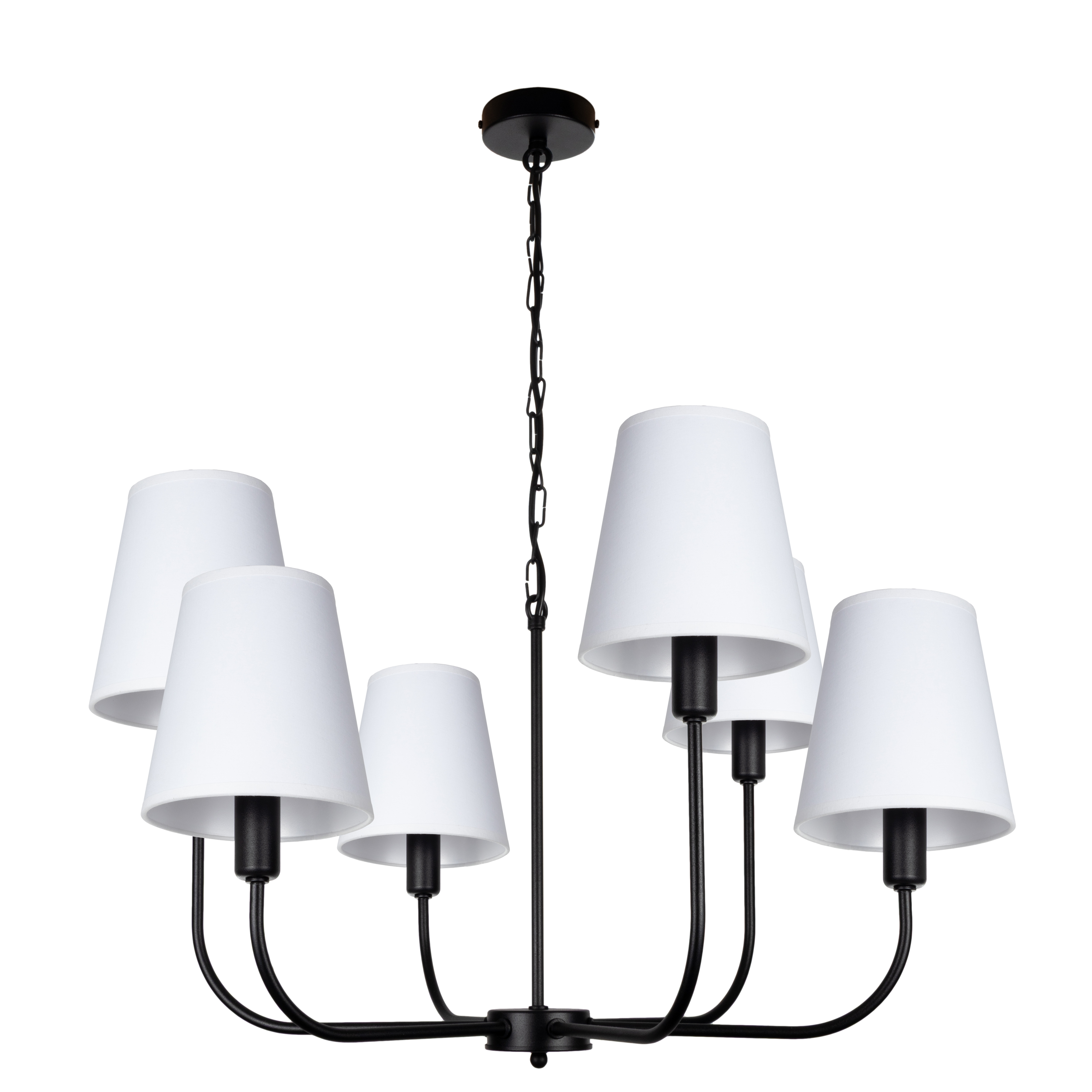 Lampa wisząca LUNERA 6 – czarna, z abażurami materiałowymi