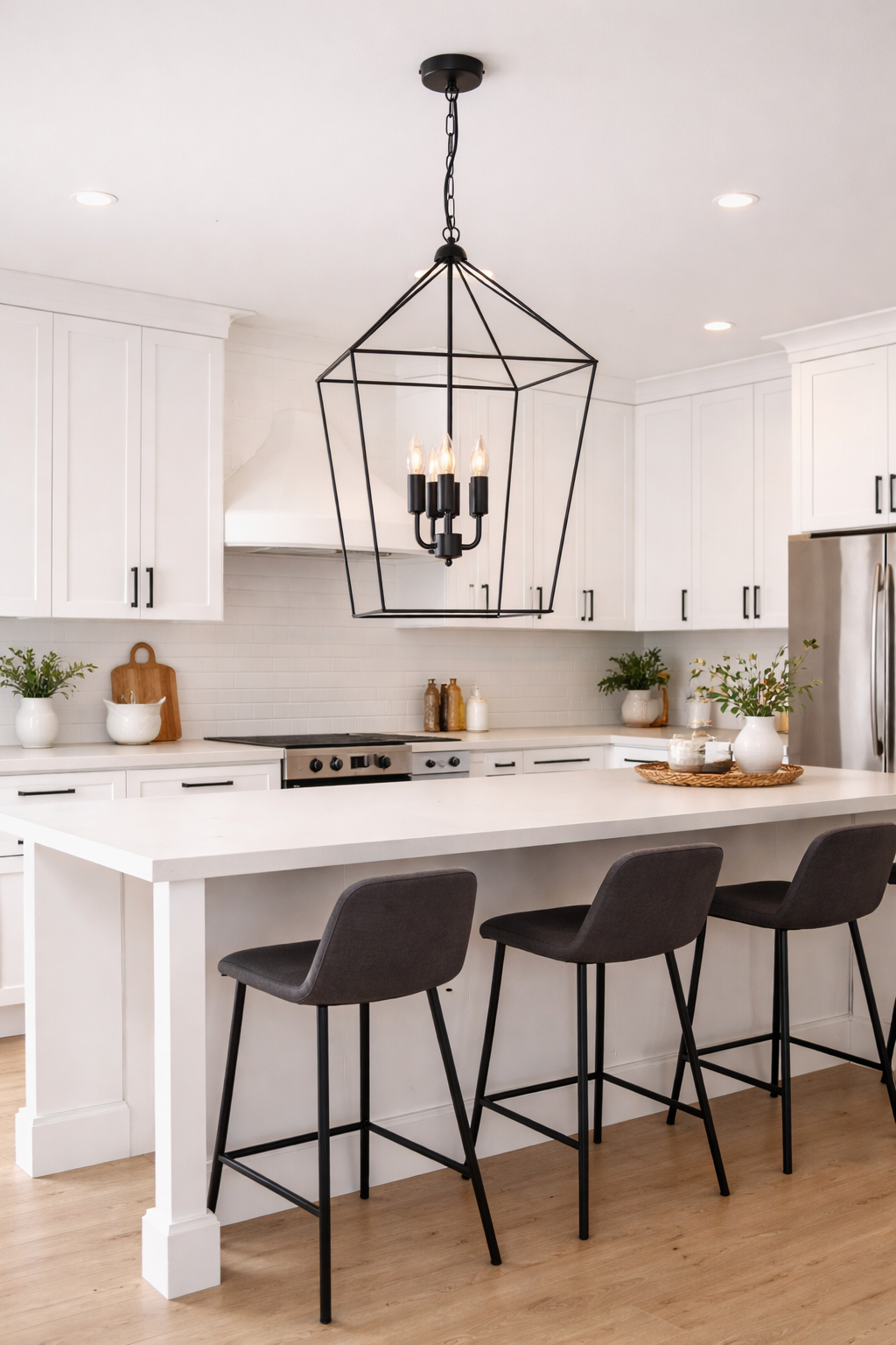 Stylowa lampa wisząca Loft Latern 4 to idealne połączenie nowoczesnego designu i industrialnej elegancji. Jej geometryczna, otwarta konstrukcja w formie latarni wykonana została z czarnego pręta metalowego, co nadaje wnętrzu wyrazisty, loftowy charakter.