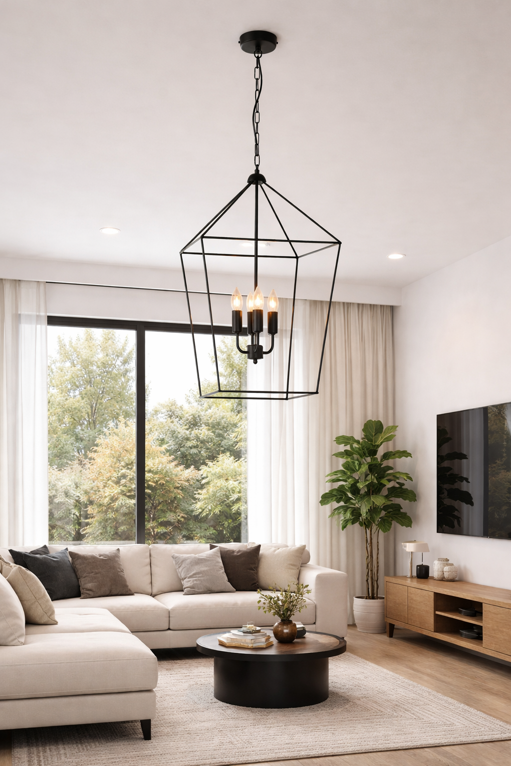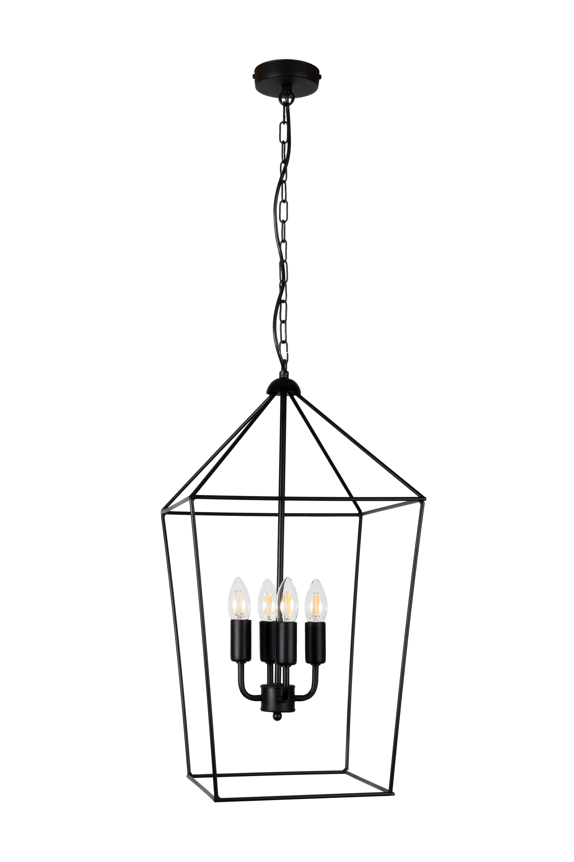 Nowoczesna lampa wisząca Loft Latern 4 – metalowa, czarna, styl industrialny, 4-punktowa.