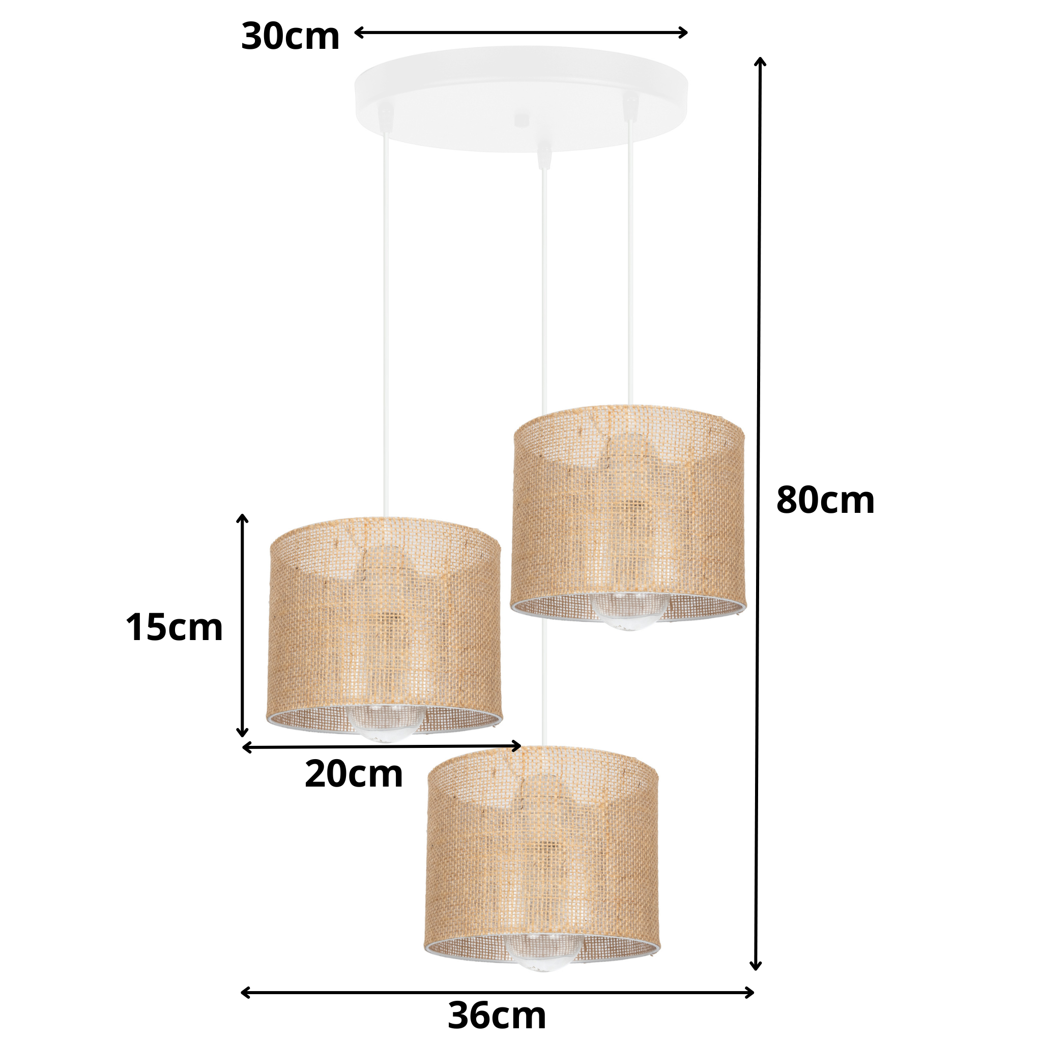 Lampa wisząca plafon żyrandol BOHO len 3 żarówki biała