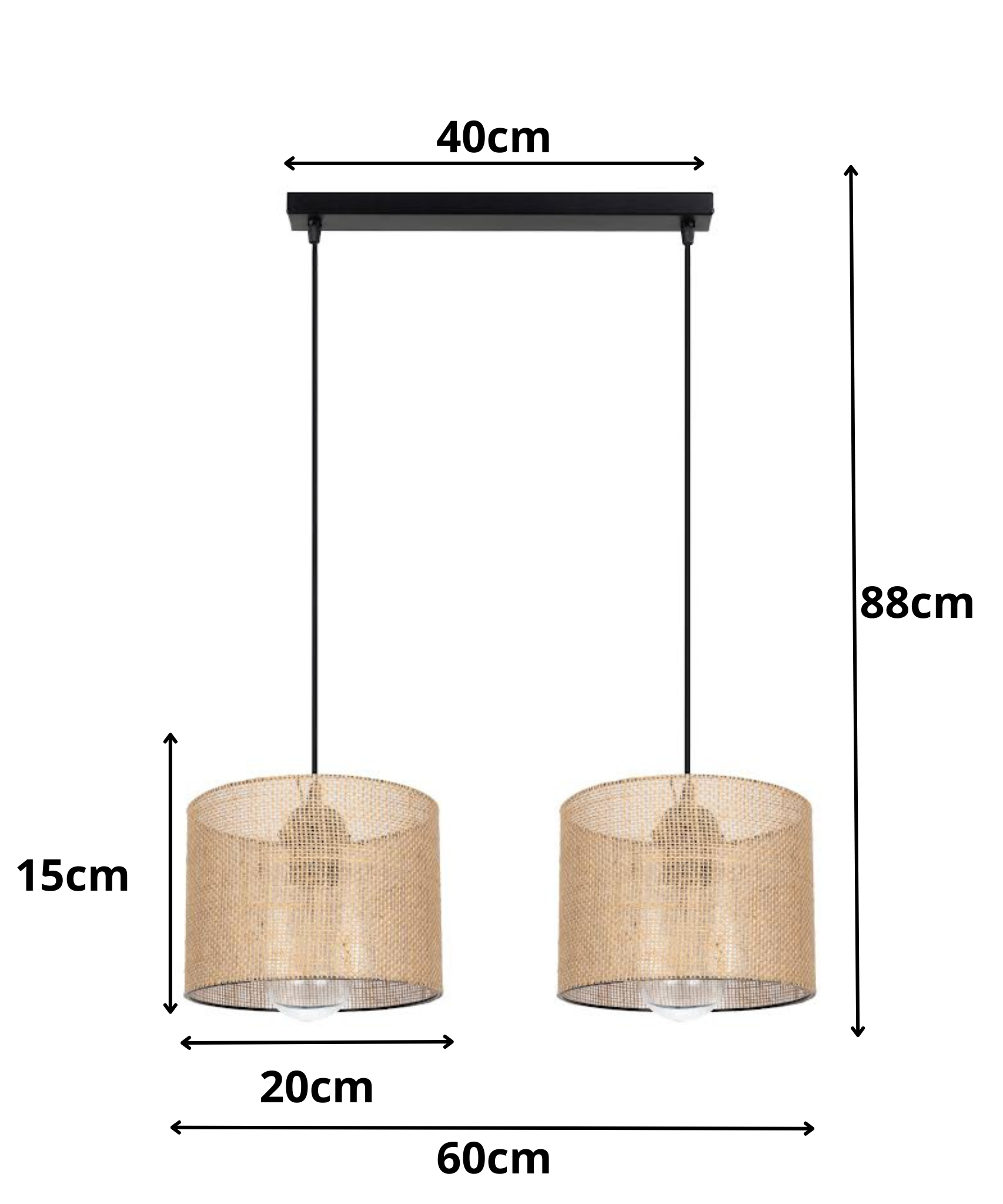 Lampa wisząca żyrandol BOHO len 2 żarówki czarna