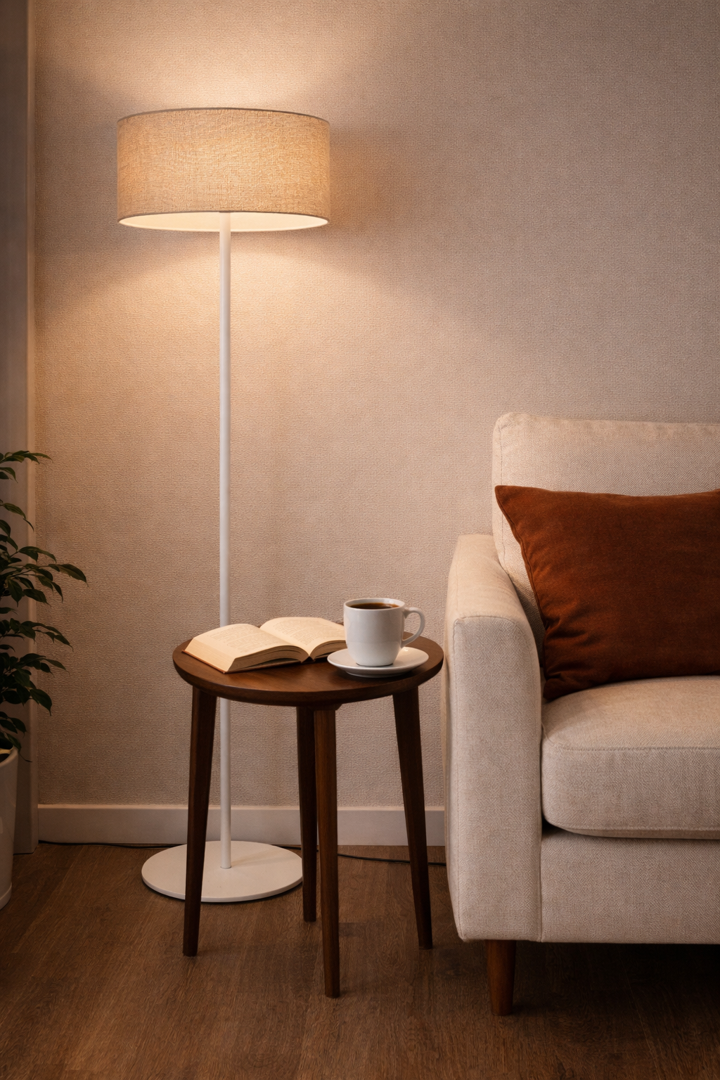 Naturalny wygląd lampy wprowadza do pomieszczenia ciepło i prostotę, a abażur dobrze rozprasza światło i oświetla pomieszczenie. Jeśli stawiasz na prostotę i naturę - ta lampa jest właśnie dla ciebie.