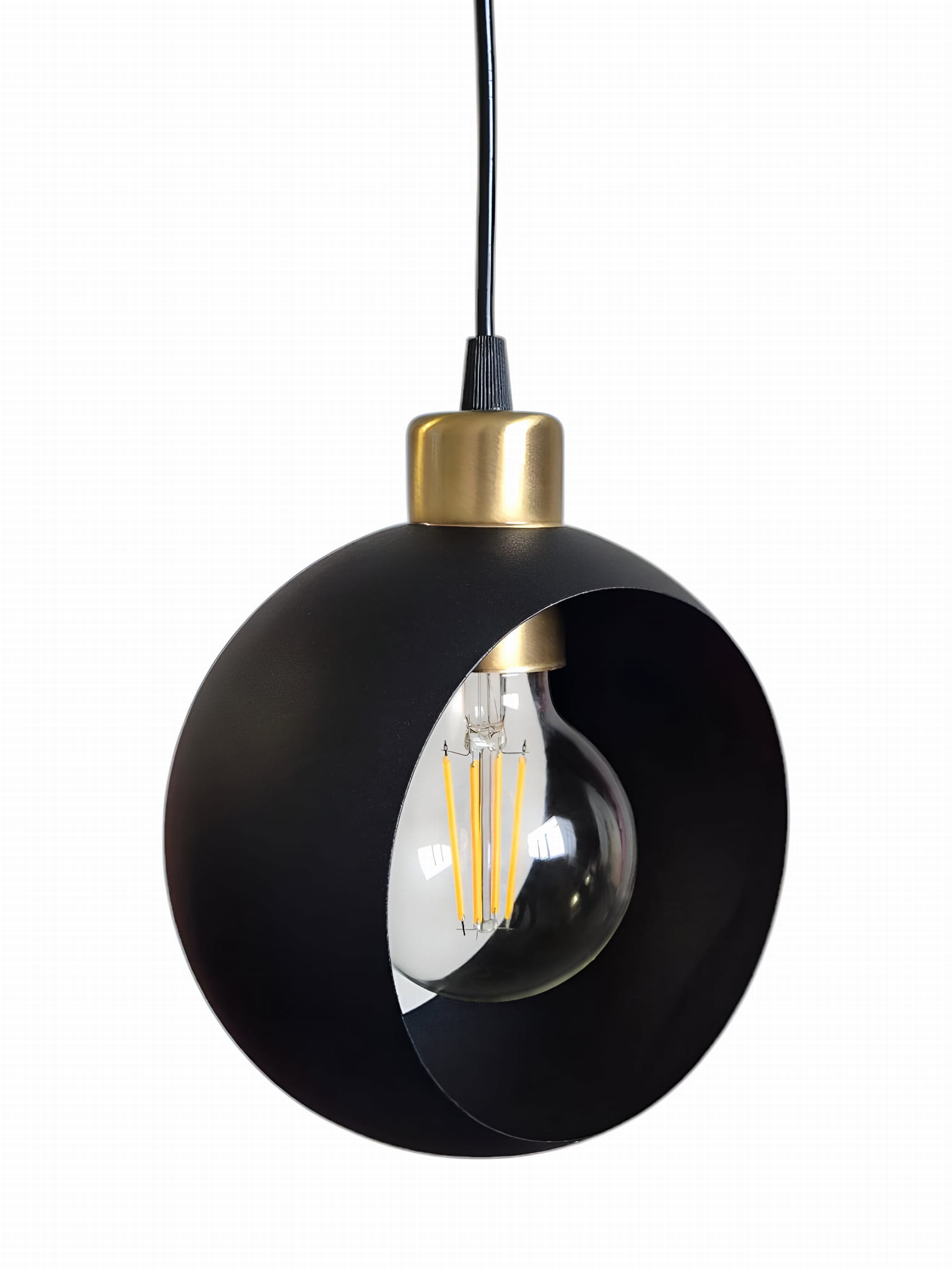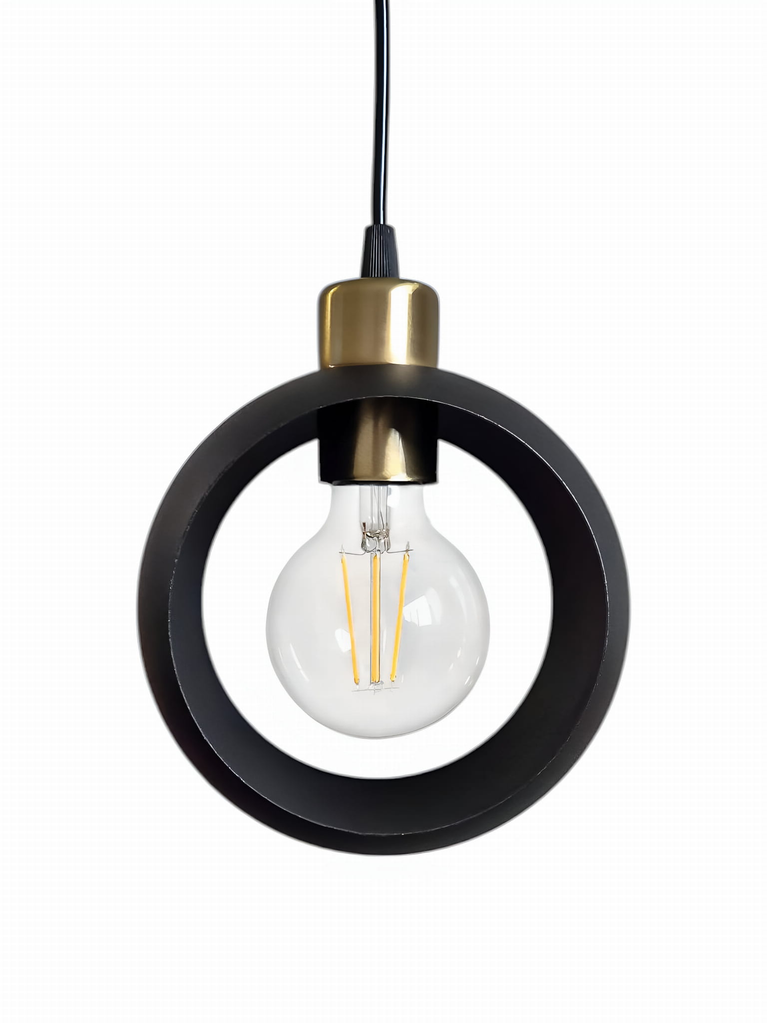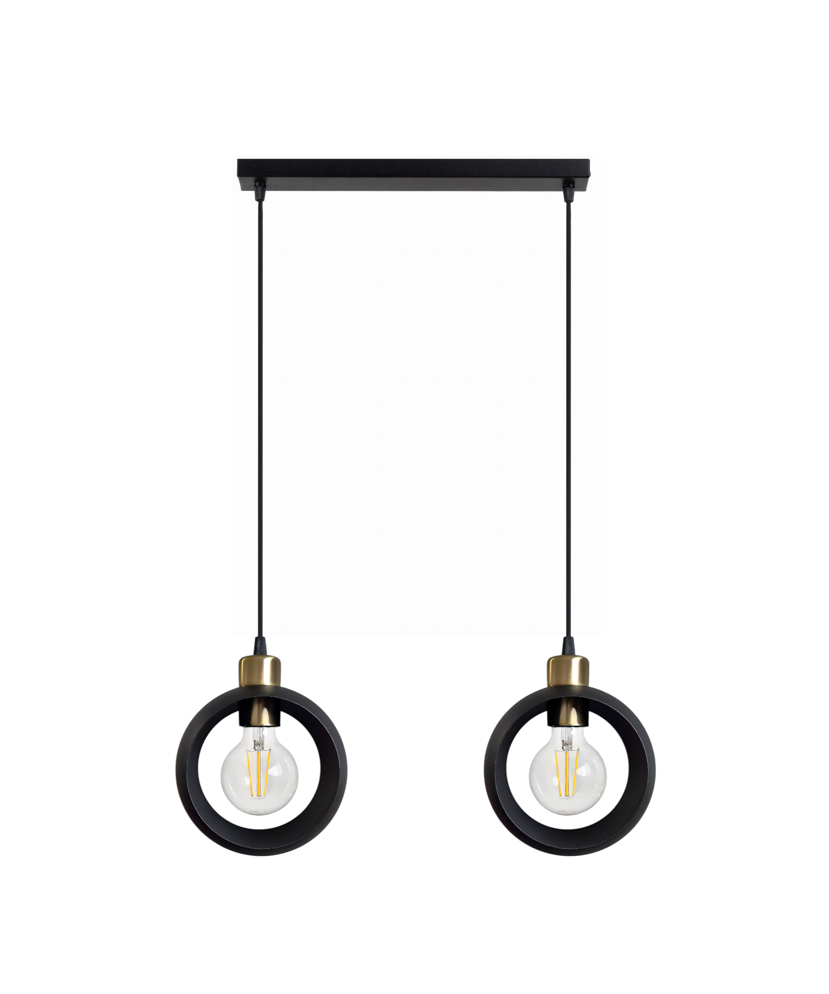 Nowoczesna lampa sufitowa RING wisząca 2-punktowa – industrialny design, loft, czarna z akcentami starego złota