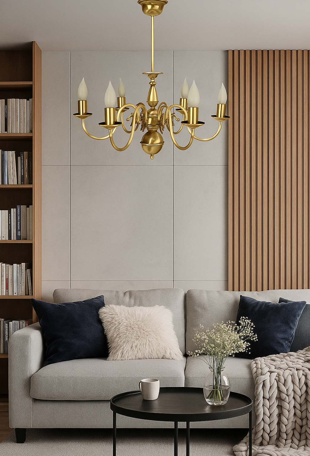 Żyrandol z mosiądzu FLAMAND 6 ramienny